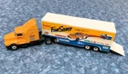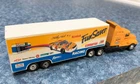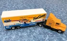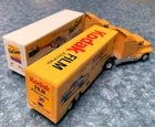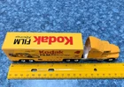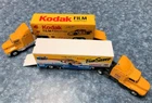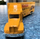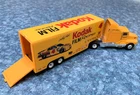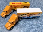 Bid NOW on this Pair of MATCHBOX Kenworth TRACTOR TRAILER TRUCKS with KODAK Film and Camera NASCAR RACING Graphics! The #4 Chevy Monte Carlo stock car pictured on the side of each trailer was driven by Sterling Marlin and won the 1994 Daytona 500 . The racing company was Morgan McClure Motorsports . I believe these are 1:87 (HO) Scale . They have been played with but are in VERY GOOD condition , with just a few paint chips (see all photos). The cabs have yellow diecast bodies. One has a chrome plastic and diecast chassis with the Matchbox Logo , (c)KENWORTH 1600 - Made In China , and Matchbox (c)1993 . The other has a black plastic and diecast chassis with the Matchbox Logo , (c)KENWORTH 1600 - Made In China , and Matchbox (c)1993 . Each cab measures 4-1/8" long by 1-1/4" wide by 1-3/4" tall . The Fun Saver trailer body is white plastic with opening tailgate and a metal chassis with the Matchbox Logo and LOW BED TRAILER - MATCHBOX (c)1993 - Made In China . The Kodak FILM Racing trailer body is yellow plastic with opening tailgate and a metal chassis with the Matchbox Logo and LOWBED TRAILER - MATCHBOX (c)1993 - Made In China . Each trailer measures 5" long by 1-1/4" wide and 2" tall . Connected lengths are 7-3/4" . All tires are hard rubber on chrome plastic wheels with metal axles. High bidder in the U.S. pays $7.49 for discounted and insured USPS Ground Advantage shipping/handling - packaged weight is 14 ounces . (See below to combine shipping.) Prompt payment is required. Please ask any questions you may have about these items BEFORE bidding! Check out my other items for more model cars and trucks and other interesting collectibles and $AVE by COMBINING SHIPPING ! (Pay for additional cost (if any) due to combined weight, but there's no extra handling fees for additional items!) BEFORE PAYING , you must Request a Total or Contact Me to send you an invoice if you want to combine shipping on multiple listings!