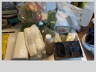 loads of plaster cloth rock mold spray head stirring sticks 10 bags of forage & turf rock debris book of instructions lightweight hydrocal tree trunks bag of old trees ( flocking is cominoff of these) the box is 9 pounds