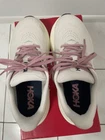 These HOKA Arahi 8 shoes are super comfortable and barely broken in! Even though they were worn a few times, they still feel like new with amazing arch support and cushioning. The wide fit is perfect, and the rose cream color is so pretty. The minor creases and tiny mark are barely noticeable—great deal for a high-quality, lightly used pair!