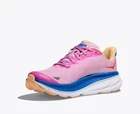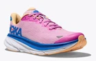 HOKA Women's 7.5 D WIDE Clifton 9 Running Shoes in Cyclamen / Sweet Lilac Verified vegan construction. APMA Approved: The American Podiatric Medical Association Seal of Acceptance is awarded to products that promote good foot health and are substantiated by a committee of discerning podiatrists by wear-testing and review of the application and supporting documentation. APMA Acceptance must be applied for and is not automatically available to styles that meet its criteria. The ninth iteration of our award-winning Clifton franchise has launched, lighter and more cushioned than ever before. Eliminating weight while adding 3mm in stack height, the new Clifton 9 delivers a revitalized underfoot experience with a responsive new foam and improved outsole design. Removing overlays and hotmelts, the stripped back upper has been consciously crafted with a plusher heel, reflective heel panel, and streamlined tongue with single side medial gusset. Vegan engineered knit upper. Round toe dsign. Lace-up closure. CMEVA foam midsole. Durabrasion rubber outsole. Imported.