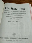HOLY BIBLE KING JAMES VERSION Vintage World Publishing Company Publication date not listed....late 50's early 60's Bible measures 5 1/2" x 8" x 3/4". Black leatherette cover with red page edges. Bible has concordance and red letter words of Christ. Beautifully illustrated pictures throughout and very nice set of maps in the back. Cover and pages are very nice with minimal wear. Back cover does have a 1" tear on the top. Pages are nice with no tears. Small folds found on some pages. There are some markings in the Bible but does not interfere with reading. The centerfold with personal records has been written in. Bible is in good to very good condition. Ships USPS Media Mail Excellent Customer Service & Fast Shipping!!