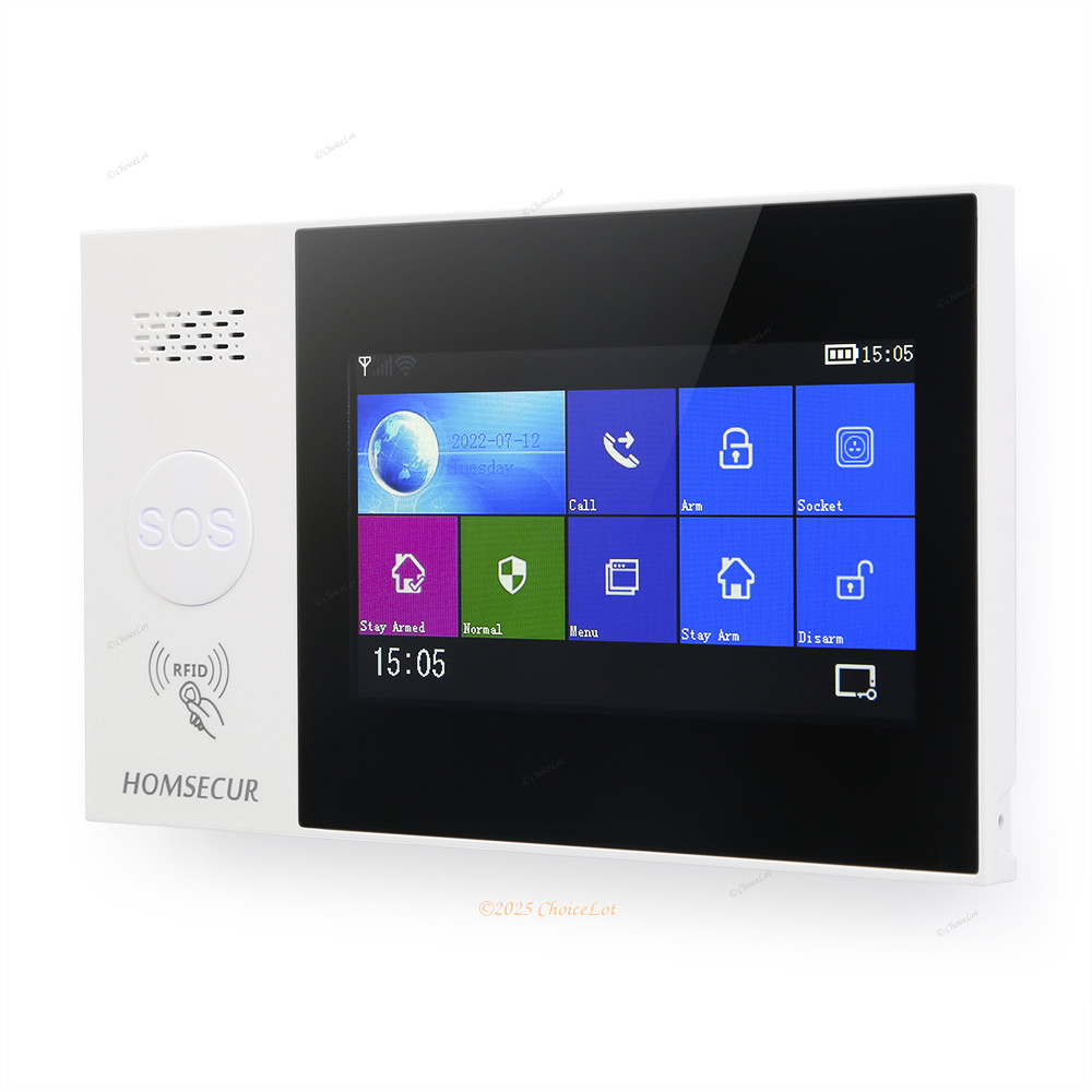 HOMSECUR Wireless WIFI 4G GSM RFID LCD Home House Alarm System+4 Pet-Immune PIR /12 Descriptions HOMSECUR ® Wireless 4G WIFI Touch Screen Burglar Alarm System for Residential and Business Security Alarm Control Panel * 1 + Wired Siren * 1 + Wireless Pet-Immune PIR * 4 + Wireless Door Sensor * 5 + Wireless Remote Control * 4 + Wireless Smoke Sensor * 1 + Wireless Panic Button * 1 + Security Sticker Pack * 1 2 Kinds of Connection: 4G/GSM-2G and WIFI The alarm system works with the 4G/GSM-2G SIM card, connecting to the outside world through Phone Call and SMS and with alarm information in real-time. The alarm system works with the WIFI module, connecting to the outside world through the Internet. The free APP pushes the alarm information in real-time. 3 Ways to Remote Control the Alarm Panel The alarm system can be controlled by Call and SMS (supports up to 5 designated phone numbers for alarm calls and 5 designated phone numbers for SMS notification). The alarm system can also be controlled through the panel, remote control, and RFID card. 8 Defense Zones Attribute The alarm system provides 8 defense zones to customize your need. Out Alarm Active Stay Arm Active Out Alarm Active Without Delay Work on ARM status. Work on ARM/Stay ARM(Home Arm/Partial Arm) status. Work on ARM status without delay. Stay Arm Active Without Delay 24 Hours Active 24 Hours Silent Work on ARM/Stay ARM(Home Arm/Partial Arm) status without delay. Alarm whenever and whatever status. No audible alarm sound. Doorbell Close Tinkling sound, suitable for front doors. Bypass Sensors when They are not needed. 10 Languages for Selection It is built-in 10 kinds of languages in the menu (English, Deutsch, Français, Español, Italiano, Português, РУССКИЙ, Polski, Ελληνικά, 简体中文). Human Voice, Displaying, SMS, and push notification will be in the selected language. Support Various Wireless and Wired Sensors The alarm panel supports 4 wired zones and 100 storage for remote control, rfid and wireless sensors. Please feel free choose accessories to customize your own security system. Outstanding Features Built-in Rechargeable Battery Backup rechargeable battery can last up to 1-1.5hours hours with power lost alert when AC power is off. SOS for Emergency Help By pressing SOS button on remote control or alarm panel, the alarm system will be triggered with sounding siren for attention and automatically dial the designated phone numbers to enable on-site communication. Timing Arm/Disarm the Alarm Panel You can set exact time when to arm and disarm the system, making you feel peace of mind when you are at work. Arm Delay and Alarm Delay They are also known as exit and entry delay. The time can be adjusted based on your requirements, making you feel free to exit or enter the house when Arming/Disarming the system. Arm/Disarm/Alarm Log Records Arm/Disarm/Alarm Log can be reviewed on the alarm panel and APP, never miss any event for home security. Arm/Disarm Status Confirmation You can get SMS confirmed after Arming/Disarming to guarantee that your operation is successful. SMS Notification of AC Power Failure and Recovery If the main power fails/recovers, the security console will send SMS to preset phone number to alert you. Anti-Tamper Alarm The alarm will be activated when the mounting bracket is separated from the alarm host. No worry when the alarm host was damaged by the intruder. 12 Alarm Types for Sensors It supports 12 alarm types for sensors like door alarm, fire alarm, window alarm, gas alarm, and so on. 20s Recorded Dial-Out Voice Messages It can be automatically played when alarm occurs and alarm call is answered. Secure and Safe for Smart Home Functions and Installation of Accessories We also provide other optional Wireless & Wired accessories for sale. Please feel free to contact us if you have any needs. Specifications Alarm Control Panel Model NO. LD04-4G Display 4.3 inch IPS color screen Network 4G/2G WiFi IEEE802.11b/g/n(2.4GHz) wireless network Wireless Frequency 433MHz±0.5MHZ Wireless Coding EV1527 Multi-Language Menu English, Deutsch, Français, Español, Italiano, Português, РУССКИЙ, Polski, Ελληνικά, 简体中文 Power Supply DC5V (Micro USB jack) Wireless Sensors Support up to 90 storage for remote control and sensors RFID cards 10Pcs Wired Sensors 4 wired zones support numerous pieces of wired sensors Anti-Tamper Function Available Event Logs 50 alarm logs and 20 arm logs Built-in Siren 80dB Working Current <140mA when the screen is off <280mA when the screen is on Standby Current <80µA Siren Current <560mA Working Temperature 0°C~50°C Material ABS Plastic Humidity ≤80% rh External Siren Unlimited wireless flash sirens and one wired siren Back-up Battery Backup rechargeable battery can last up to 1-1.5 hours with power lost alert when AC power off Wireless Pet Friendly/ Pet-Immune PIR(<15KG) Outstanding Function Low power alert function Pet-Immune for the pets under 15kg Wireless Frequency 433MHz Power Supply 3*AA battery (not included by default) Transmission Distance About 23m with one barrier Standby Current ≤15uA Working Current ≤15mA Detective Range Horizontal 110° Installation Height 2.2m Working Temperature -10°C~50°C Humidity 45%-75% rh Battery Lifespan About 6 -12 months Wireless Door/Window Sensor Wireless Frequency 433MHz Power Supply CR2032 3V battery (not included by default) Transmission Distance About 23m with one barrier Internal Distance 20-25mm Transmission Current 8-12mA Static Current 1-5uA Working Temperature 15°C~35°C Humidity 45%-75% rh Battery Lifespan About 6 -12 months Wireless Remote Control Wireless Frequency 433MHz Power Supply 27A 12V battery Transmission Distance About 25M with one barrier Emission Current 10-18mA Emission Speed T≤1 second Working Temperature 15°C~35°C Humidity 45%-75% rh Battery Lifespan About 12 months Wireless Smoke Sensor Outstanding Function 1.Work alone or with alarm system 2.Test button for easily te