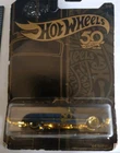 This diecast model car from Hot Wheels is a 1:64 scale replica of a 1964 Chevrolet Impala. The car is part of the 50th Anniversary series and features a gold chrome base with tinted glass. The lowrider theme and Chevrolet branding make it a great addition to any car enthusiast's collection. The model was manufactured in 2003 and is made of high-quality materials. It is a perfect gift for anyone who loves cars or is a fan of Hot Wheels.
