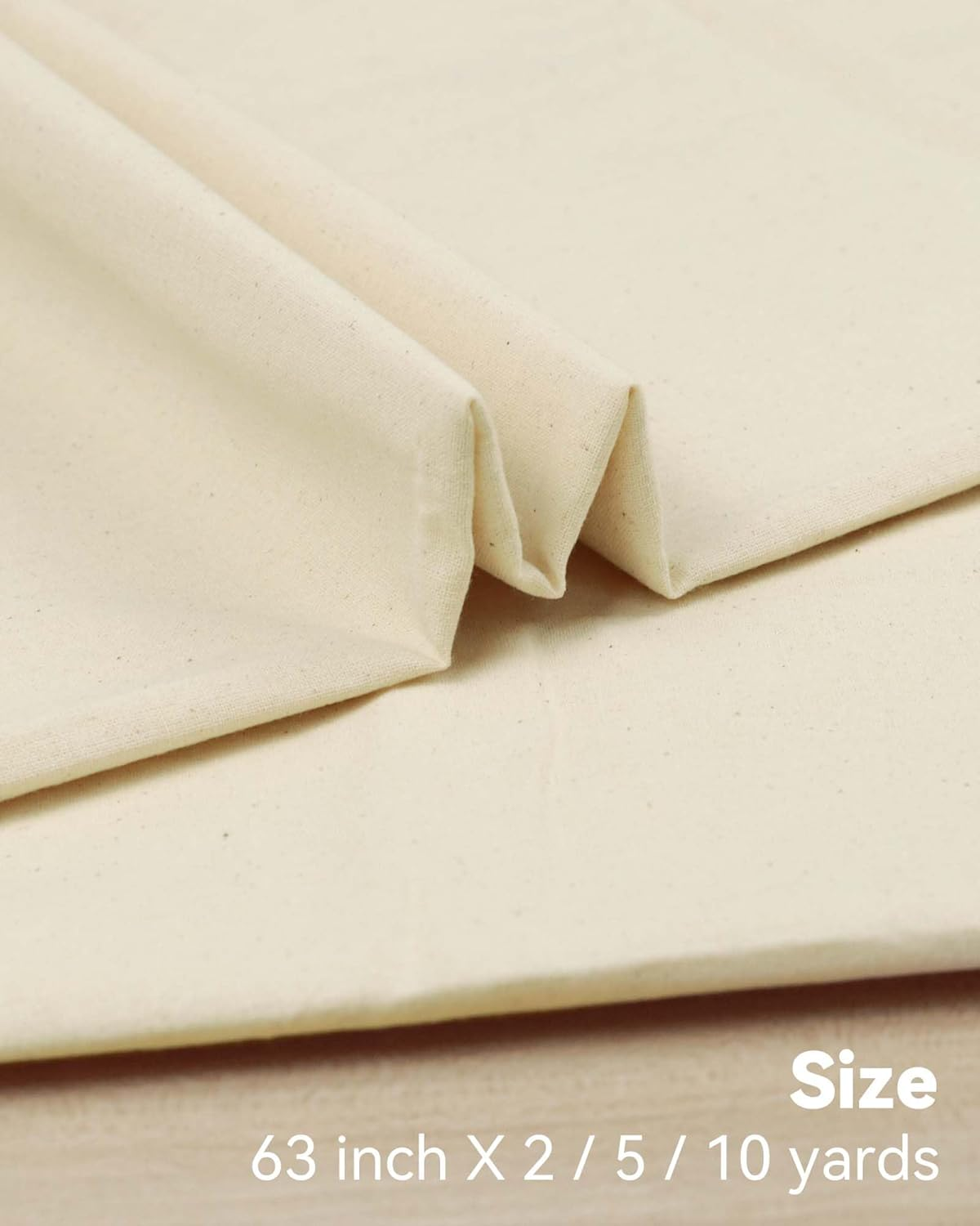 CONTENTS AND MEASUREMENT: 100% cotton and 63" wide Muslin fabrics, This fabric has a smooth finish, with a soft touch. It also has a natural light drape and stiffness, thanks to its cotton content. ( when order QTY= 2, means you will receive 2 separate pack) MULTIPLE USES: Muslin fabrics are a staple for fashion designers and quilters! Use them for backing, backdrops, embroidery, fittings, Draping and more. This fabric is great for curtains, apparel, aprons, sheets, quilting, and other crafts projects. WASHING INSTRUCTION: This fabric can also be machine washed and dried, but as always, we strongly recommend washing on a low setting, or hand washing and air drying the fabric to best maintain its quality. Due to the unfinished state of the 'Natural' muslin, small flecks of cotton seeds will be visible within the fabric. This is normal and the fabric is not defective. Please note that the unbleached muslin has a width of 63", while the bleached muslin has a width of 59". Product description Customer Show DISCOVER MORE FROM HOTGODEN Customer Reviews 4.5 out of 5 stars 1,166 4.5 out of 5 stars 1,166 4.5 out of 5 stars 1,166 4.5 out of 5 stars 1,166 4.5 out of 5 stars 1,166 Price $12.99 $ 12 . 99 $22.99 $ 22 . 99 $35.99 $ 35 . 99 $12.99 $ 12 . 99 $22.99 $ 22 . 99 Material 100% Cotton 100% Cotton 100% Cotton 100% Cotton 100% Cotton Color Natural Natural Natural Bleached Bleached Size 63 inch x 2,5,10 Yards 63 inch x 2,5,10 Yards 63 inch x 2,5,10 Yards 59 inch x 2,5,10 Yards 59 inch x 2,5,10 Yards Multi-purpose ✔ ✔ ✔ ✔ ✔ Easy-to-use ✔ ✔ ✔ ✔ ✔