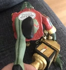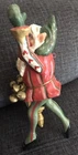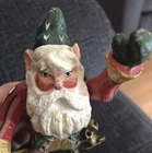 This House of Hatten Enchanted Forest Santa Elf Ornament is a charming addition to any holiday decor. The elf-shaped ornament features a variety of festive details, from the lantern and bells to the hand-painted and handmade design. The multicolored ornament is a limited edition piece, signed by the artist and made using mixed media folk art techniques. Measuring roughly 7.75" long, this vintage ornament is perfect for adults who appreciate unique and decorative items. The item is from 1988 and was manufactured in the Philippines.