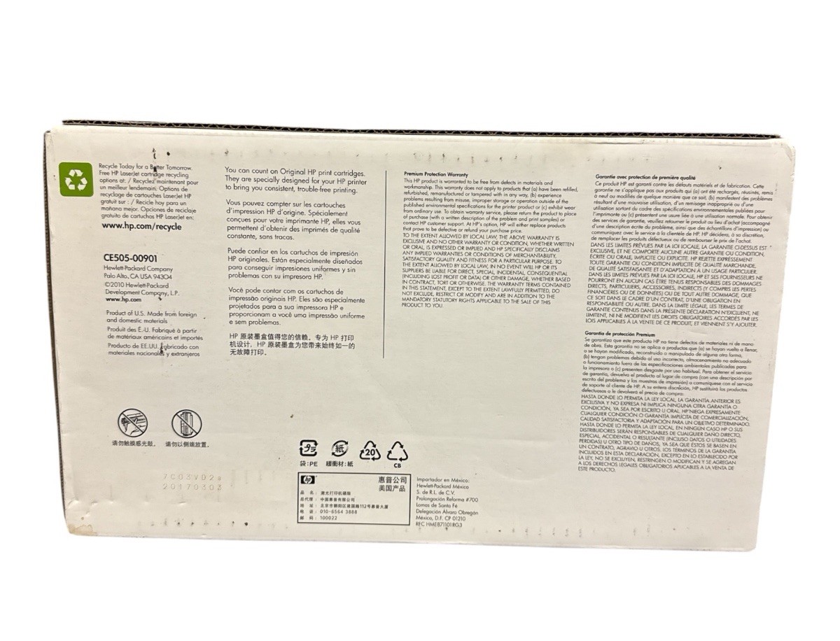 The HP 05A CE505A Black LaserJet Toner Cartridge is a genuine and original product manufactured by HP in Japan. It is specifically designed for use with HP printers P2035 and P2055, offering high-quality printing in black color. This toner cartridge ensures consistent and professional results, making it an ideal choice for both home and office printing needs. With its reliable print technology and compatibility with specific HP printer models, this product is a great value for those looking for quality printing supplies.