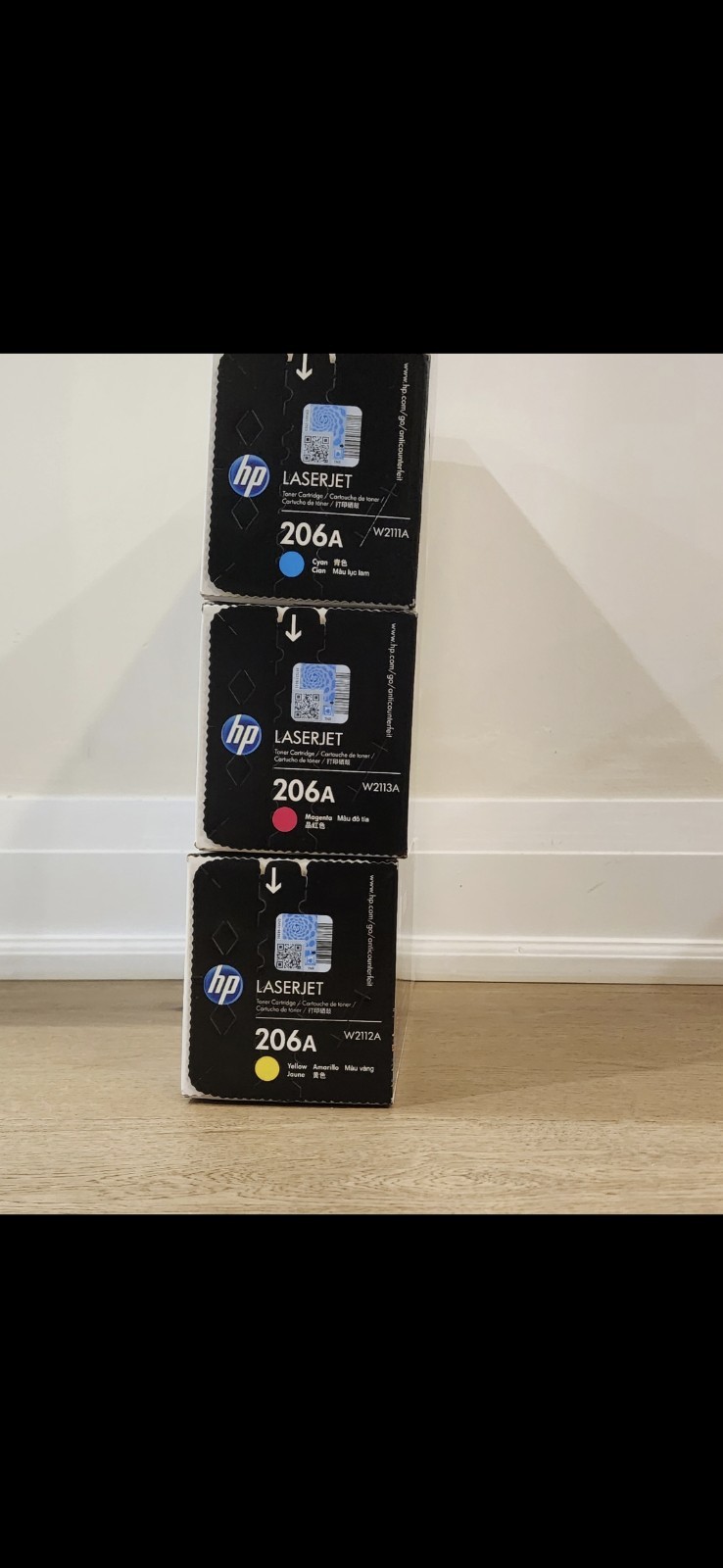The HP 206A Toner Cartridges Set of 3 includes genuine/original cyan, magenta, and yellow cartridges specifically designed for HP printers. These cartridges are compatible with models like the HP LaserJet MFP M283 and LaserJet Pro M255. Manufactured in Japan, this set of 3 toner cartridges ensures high-quality printing with vibrant colors and reliable performance, making it an ideal choice for all your printing needs.
