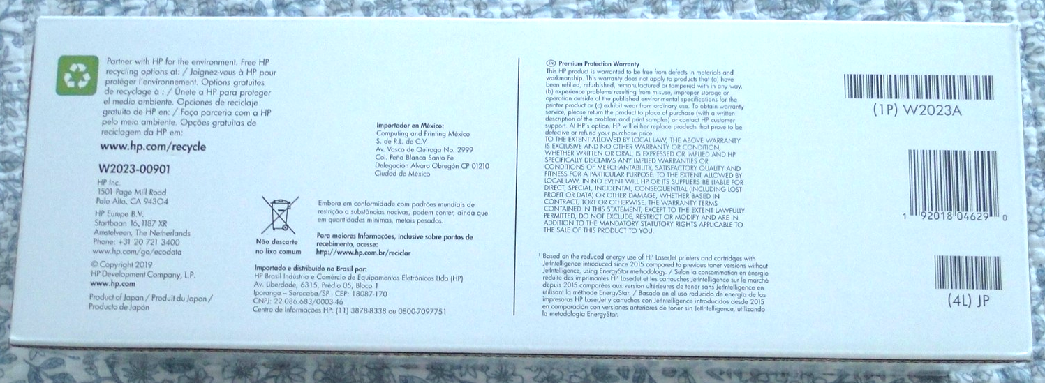 The Genuine NEW HP LaserJet Intelligence 414A W2023A Magenta toner cartridge is specifically designed for use with select HP Color LaserJet Pro printers. This original HP product ensures high-quality printing results with its laser print technology. The magenta color cartridge is sealed in a retail box and is compatible with models such as HP Color LaserJet Pro MFP M479fdw and M454dw. With a page yield of HP 414A Color Toners Page Yield, this genuine HP product is manufactured in Japan and offers reliable and consistent printing performance.