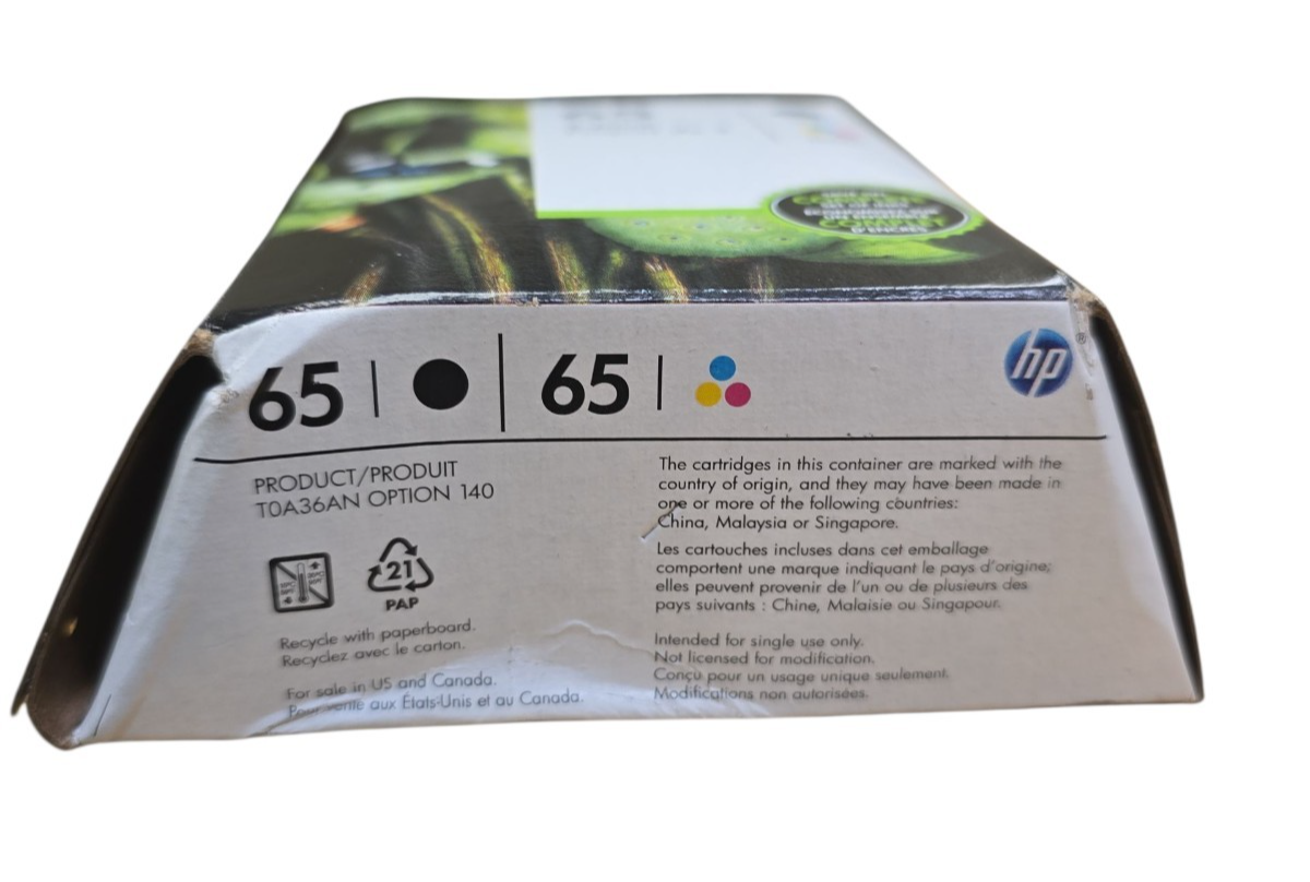 HP 65 Black 65 Tri-Color Combo Printer Ink Cartridges OEM Box 08/2023 100% Guaranteed for 30 days or free return and full refund. See ALL Photos For Details & What's Included In Your Shipment Shipped Via USPS, UPS, or FedEx.......Seller provides Excellent Customer Service, Ships Fast (Within 24hr Monday - Friday USPS on Saturday)