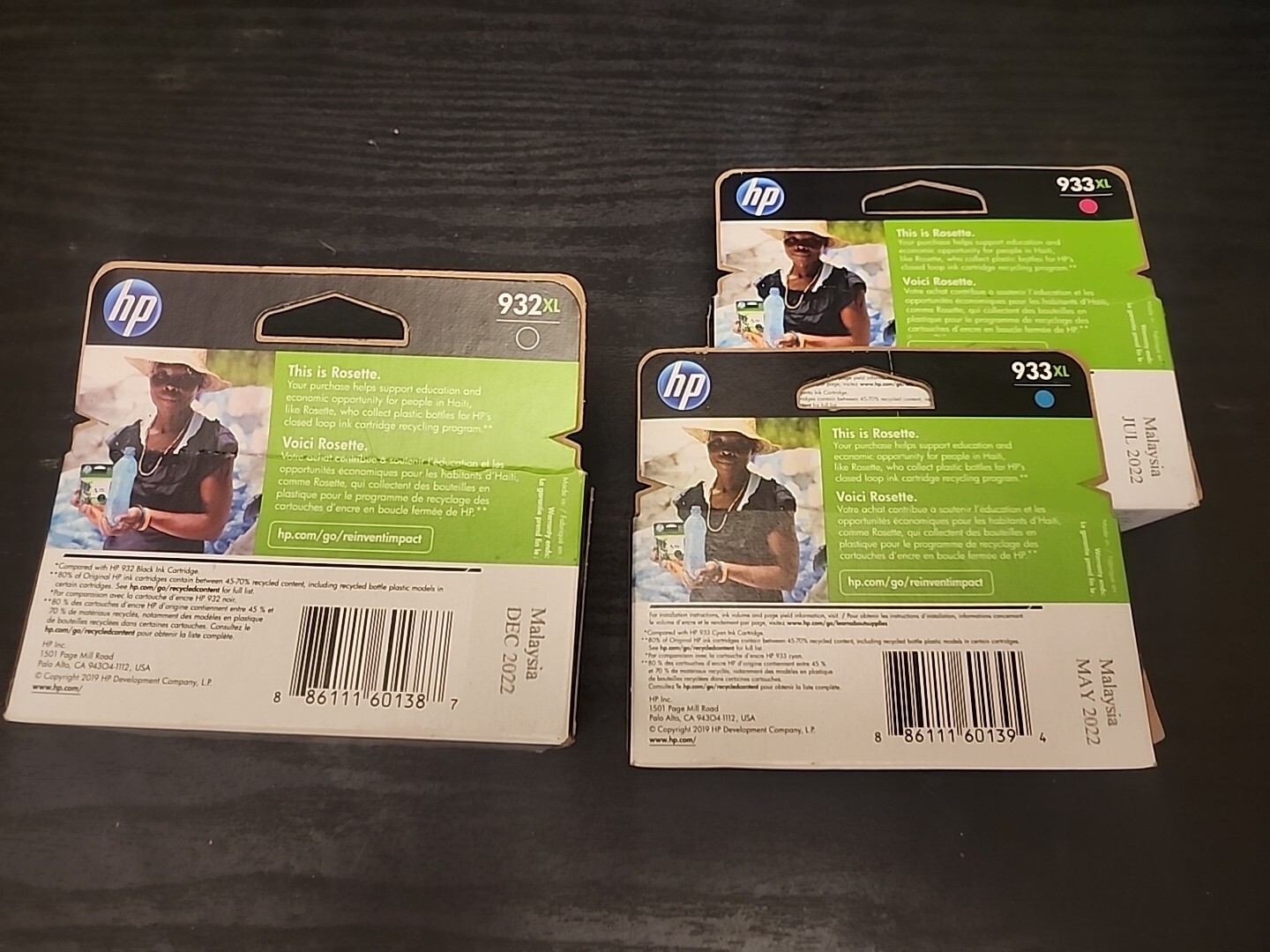 Introducing the HP 932XL Black ink cartridge (CN053AN) and the 933XL Cyan and Magenta cartridges, both compatible with HP Officejet 6100 printers. These cartridges are part of the latest ink cartridge lineup from HP, and boast a print technology that is perfect for inkjet printers. Designed to provide long-lasting print quality, these cartridges are compatible with both HP printers and other brands. The HP 932XL Black cartridge has an expiration date of December 2022, while the 933XL Cyan and Magenta cartridges have expiration dates of May and July 2022 respectively. Get your hands on these genuine HP cartridges today and experience flawless printing performance!