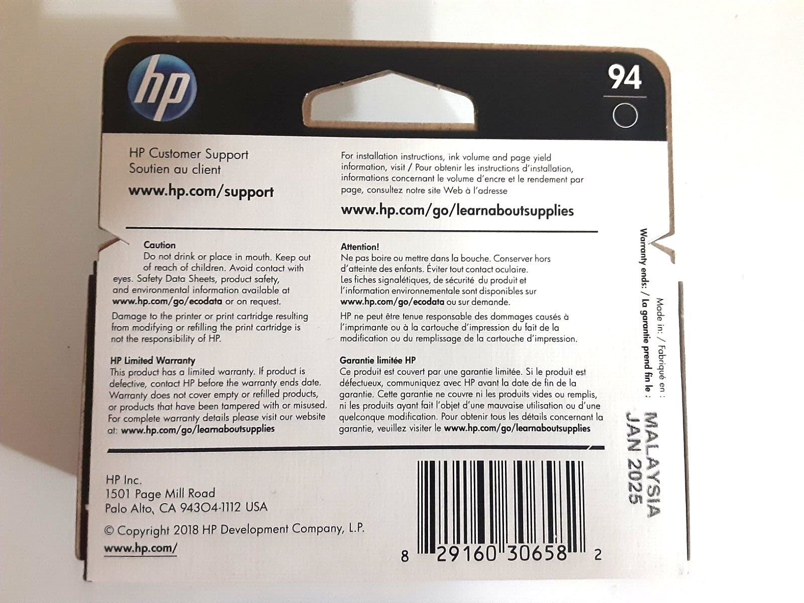 Upgrade your printing experience with the HP 94 Ink Cartridge - Black (C8765WN). This genuine and original ink cartridge is compatible with HP Deskjet, HP Photosmart, and HP Officejet printers. The ink cartridge is sealed and has a print technology of inkjet, which ensures high-quality prints. The HP 94 Ink Cartridge is designed to last for a long time, and it is perfect for those who need to print black documents or photos. The cartridge comes with an expiration date of July 2025, and it is sold at $41 MSRP. This item is perfect for those who want to upgrade their printing game and get high-quality prints without worrying about the durability of the cartridge. HP 94 BLACK INK CARTRIDGE FOR HP PRINTERS, SCANNERS, COPIERS COMPADIBLE WITH HP DEVICES, CHECK FOR COMPATIBILITY ITEM IS NEW, UNOPENED, AUTHENTIC HP ORIGINAL INK CARTRIDGE (BLACK) ITEM AS PICTURED, THANKS & READY TO SHIP FAST & FREE FAST & FREE SHIPPING WITHIN THE LOWER 48 STATES GREAT PRICE APPRECIATE YOUR BUSINESS