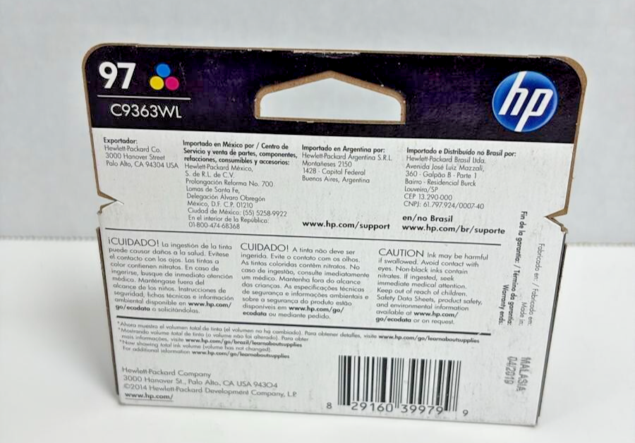 The HP 97 Tri-color ink cartridge is a genuine/original product from HP designed for use in various HP printer models. With an expired date of April 2019, this cartridge is compatible with a range of HP Deskjet, Officejet, and Photosmart printers. It is ideal for those who prefer to use genuine HP ink products to ensure high-quality printing results. The tri-color design allows for vibrant and professional-looking prints, making it a reliable choice for home or office printing needs.