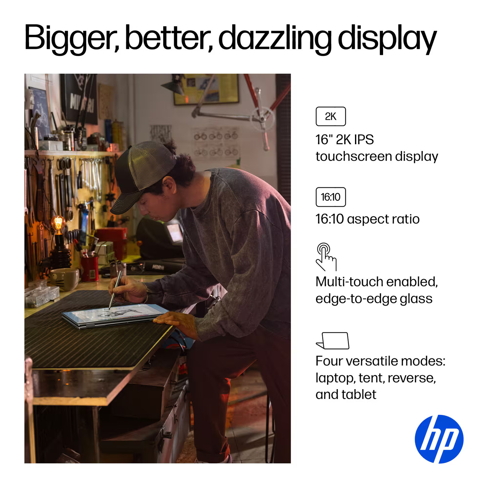 This HP OmniBook X Flip is a game-changer! The 16" 2K touchscreen is stunning, and the 2-in-1 design makes it perfect for work or play. The Ryzen 5 processor handles everything smoothly, and the lightweight build is great for on-the-go use. Love the versatility—flip it, fold it, or use it like a tablet. The SSD ensures fast performance, and the sleek silver design looks premium. Best Buy’s price and service make it a no-brainer!