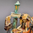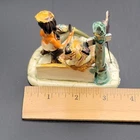 Bring a touch of Parisian whimsy into your home with this quirky, hard-to-find figurine. It's so charming, even the Eiffel Tower would tip its beret in admiration. • Art Deco style figurine • Ceramic material • Depicts painter and model • Measures 3.5 inches tall • Hand-painted details Some minor paint chipping on the figurine's edges. Base diameter = 3.5 inches, Height = 3.5 inches.