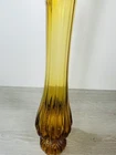 The vintage L E Smith swung glass vase is in very good condition. It measures 21 inches high with a diameter of 5 1/2 inches around. It does have some air bubbles inside of the glass, at the tip..It is otherwise chip and crack free. It weighs just shy of 3 pounds and will be shipped double boxed to ensure its safe arrival.