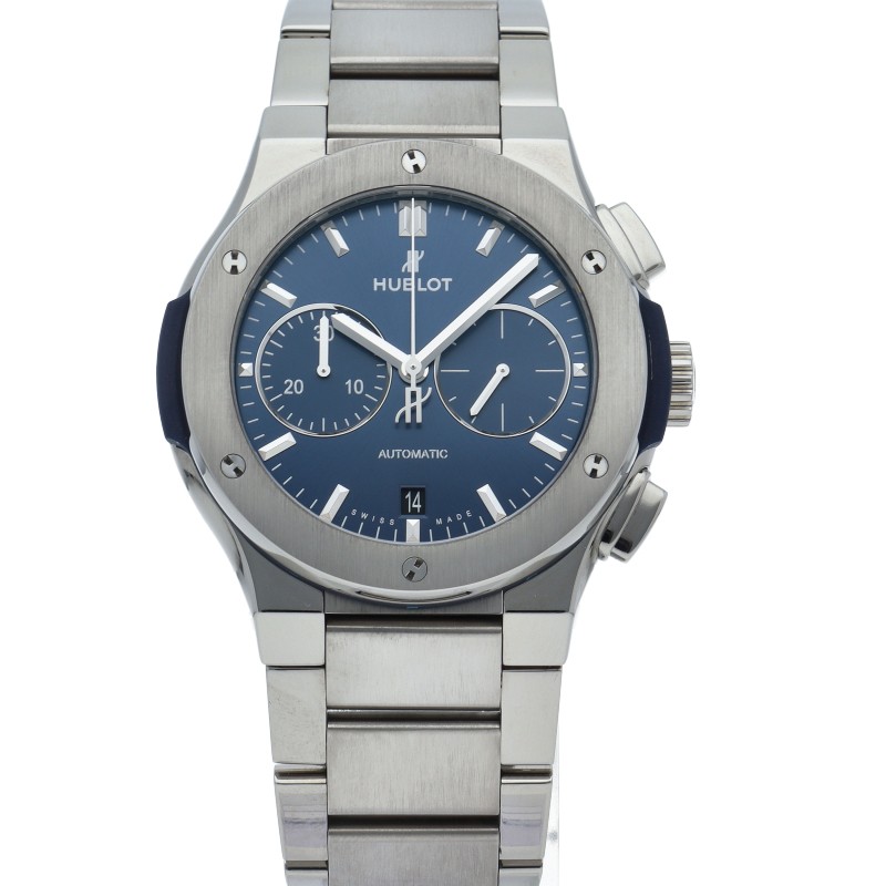 Item Number:2000130239400007 Brand HUBLOT Product Name Classic Fusion Chronograph Titanium 1.7" Bracelet Model Number 540.NX.7170.NX Material titanium Case Material:titanium Belt Material:titanium Mechanism Mechanical Automatic Weight 129.0g Size Case Diameter(H): About 1.6 inch Case Diameter(W): About 1.6 inch Wrist size: About 7.7 inch Dial blue Accessories Box Warranty Description A new model that combines the neat elegance of a thin case with the power of the Big Bang. Equipped with a chronograph function, you can see the movement from the back skeleton. Condition Extreme beauty. back skeleton. Condition Rank: SA New Brand new stuff. UNUSED Unpacked or never used stuff SA Almost close to new and looks like never used A A little scratch or stain can be seen but still high quality. AB Looks like a little used but still very few scratch and stain, and really good condition. B Looks like used and some scratch and stain can be seen but no issue at using it. BC Looks like actually used. Scratch and stain can be seen at some level. C Looks like heavily used. Scratch and stain can be seen a lot sometimes. International Buyers - Please Note: Import duties, taxes and charges are NOT INCLUDED in the item price or shipping charges. These charges are the buyer's responsibility. Please check with your country's customs office to determine what these additional costs will be prior to bidding/buying. These charges are normally collected by the delivering freight (shipping) company or when you pick the item up - do not confuse them for additional shipping charges. We do not mark merchandise values below value or mark items as "gifts" - US and International government regulations prohibit such behavior.