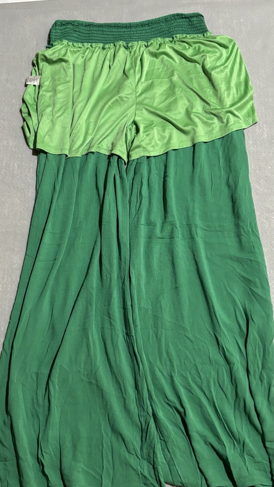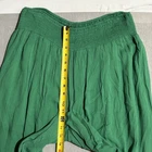 These HUDSON GRAY Pants in size XL are perfect for a woman looking for a festive and bohemian style. The green color, wide-leg design, and elastic waistband give a relaxed and comfortable feel. Made from 100% Rayon fabric, these palazzo pants are ideal for summer, spring, and fall occasions, such as travel, parties, or casual outings. The high-rise waist and flat front add a chic touch to this stylish and versatile piece from the brand Hudson Gray. AS IS, Gentle Wear - Measurements stretch and are apprx 32" Waist, and 33" Inseam Note: Tiny Staple hole near waist