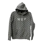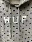 HUF Grey Polkadot Hoodie size: Large All Over Logo Embroidery Pullover Skate Street. RARE Measurements: Pit to pit = 24" Body length from HPS to HEM = 27" In great condition, comes from a non-smoking home. See photos.