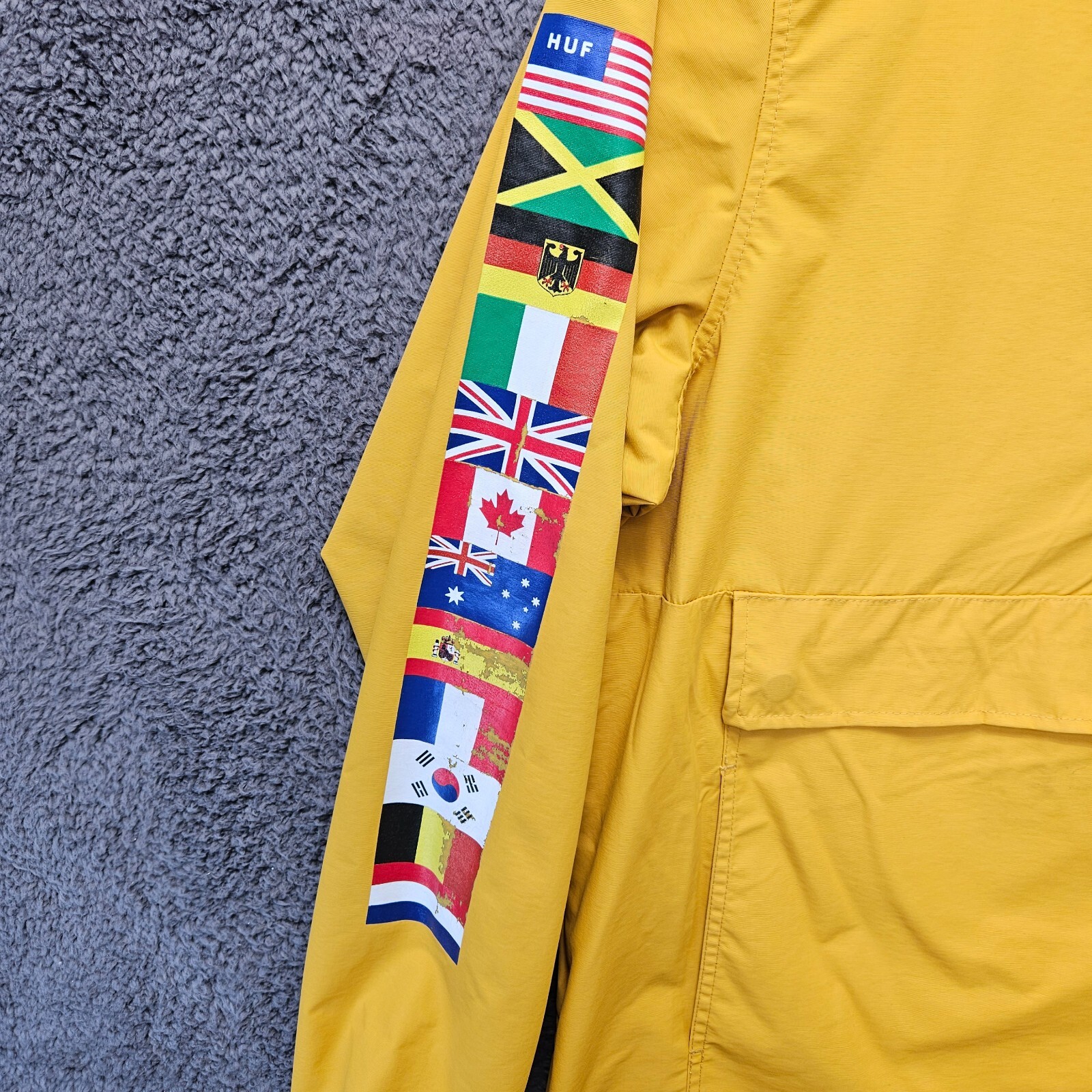 HUF World Tour Anorak Jacket Adult Small Yellow Hooded Half Zip Pullover