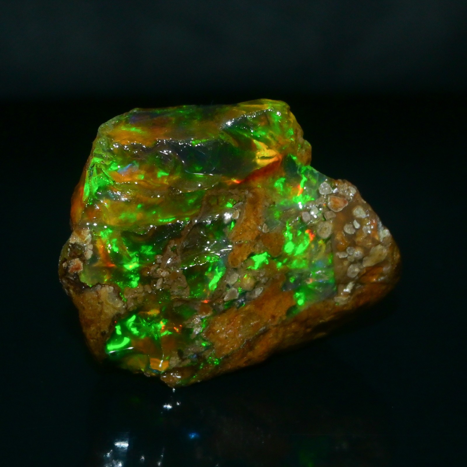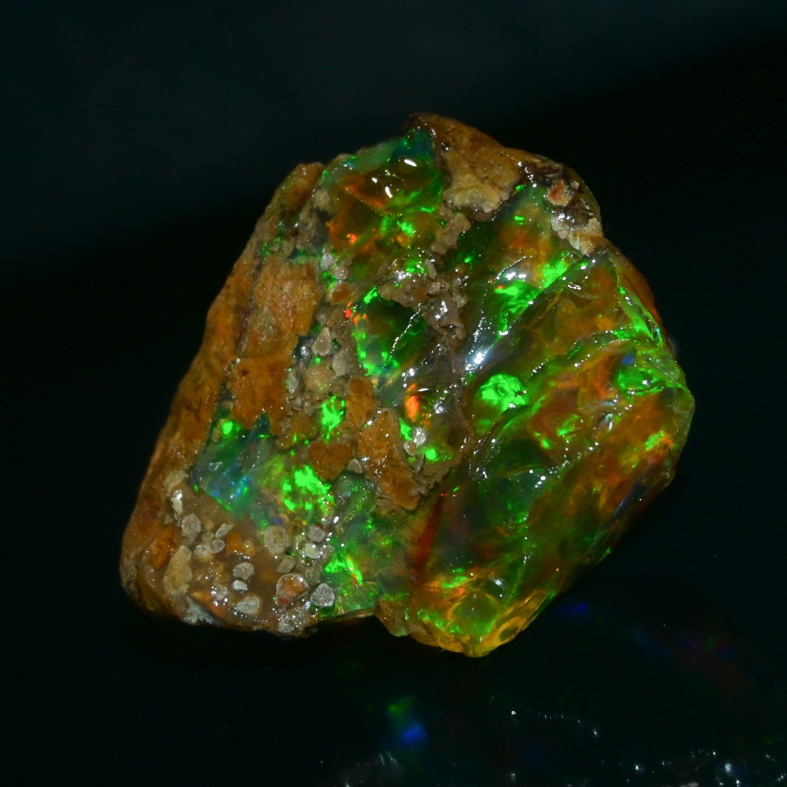 SUNSHINE GEMS Discover the Magic of Natural Ethiopian Opal Each piece of our Specimen Grade Natural Ethiopian Opal Rough is a singular, stunning example of the raw beauty Mother Earth creates. These opals are directly sourced from the world-renowned Welo region of Ethiopia, known for producing opals with some of the most vivid, diverse, and large-scale color plays seen in nature. This rough is categorized as a display specimen due to its magnificent fire and sensitivity to drying. ✨ GEMSTONE SPECIFICATIONS Please refer to the specific listing details for the exact weight, size, and color play of the opal you are purchasing. Feature Detail Type Specimen Grade Natural Opal Rough Origin Welo, Ethiopia Weight 257.20 Carats Size 49x32 MM Color Exceptional Multi-Fire – Vivid blue, green, red, orange, violet flashes visible across the stone. Treatment 100% Natural - NO smoke, dye or heat treatment. Condition Uncut, raw, and intended exclusively for display or collection. Clarity Opaque to Semi-Translucent with excellent color bar visibility ⚠️ CRITICAL CARE INSTRUCTION: MUST KEEP WET ⚠️ This specimen-grade opal is hydrophane and will crack if it dries. It is suitable only for collectors who understand how to maintain wet display rough. To preserve its structural integrity and vibrant fire, this specimen MUST be kept in a sealed environment with water. Recommended Storage: Use a sealed jar, container, or specialized display cabinet filled with distilled water. DO NOT attempt to cut, polish, or allow this specimen to dry. Selling AS-IS for collection purposes only. These Specimen Opals are perfect for: Serious Collectors: Add an impressive, rare, and large natural opal specimen to your high-end mineral collection. Museum Display: A striking example of raw Ethiopian Welo fire. Note: This material is NOT suitable for lapidary work or jewelry design. Shipping & Delivery: FREE Standard International Shipping on every order. Specialized Shipping: Shipped securely in a small sealed container with water to prevent drying during transit. Ships within 1-2 business days of cleared payment. Expedited shipping available at an additional cost – message us before checkout. Returns & Satisfaction Guarantee: 30-Day Return Policy – Hassle-free returns accepted if you’re not satisfied. Condition Requirement: Buyer must return item in its original, wet, unaltered condition. Returns of cracked/dried material will not be accepted. Your satisfaction means everything – we’re here to help with any questions or concerns. ℹ️ About Sunshine Gems At Sunshine Gems, we specialize exclusively in sourcing and providing the highest quality Ethiopian Opal Rough. Our deep connection to the Welo region allows us to work directly with local miners and suppliers, ensuring we offer premium-grade material at the best possible prices. What sets us apart: Direct-from-Source: Eliminating middlemen means better prices for you. Hand-Selected Quality : We personally vet and select every piece, focusing on stability, fire, and structural integrity (or, in this case, the most impressive display qualities). Ethical Practices: All our stones are ethically sourced, supporting fair trade and responsible mining within the community. Expertise You Can Trust: Years of experience working with opal collectors and international buyers. Explore the Beauty of Earth’s Fire – A True Collector’s Treasure. Thank you for choosing Sunshine Gems, your trusted source for authentic Ethiopian Opal rough. You’re acquiring a rare piece of natural, fiery wonder intended for display. Questions? We’re happy to help – feel free to send us a message anytime!