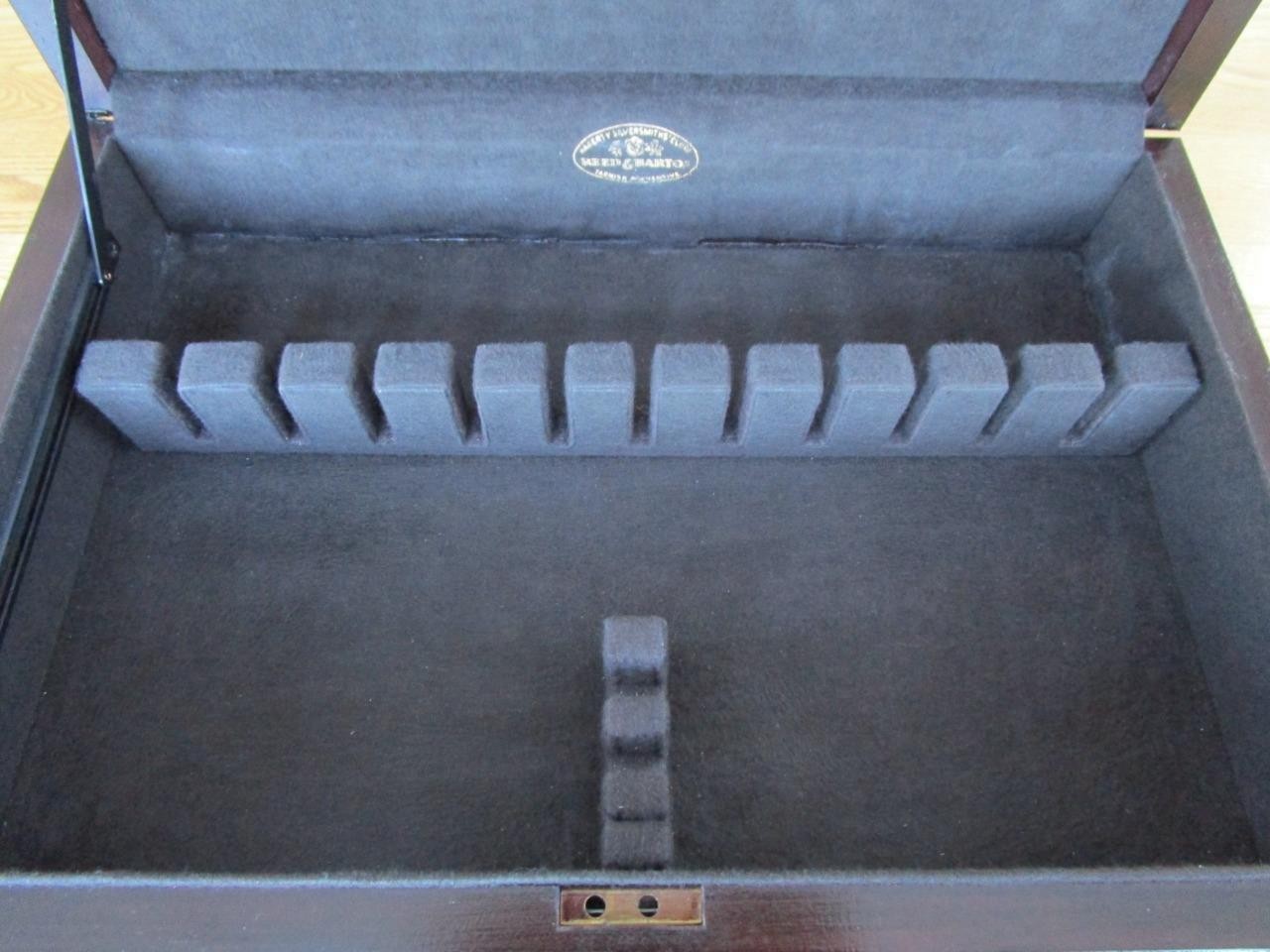 HUGE REED BARTON STORAGE CHEST-3-DRAWERS-18.5" X 12.25" X 10.5"*OLD BEAUTY-HUGE* HUGE REED BARTON STORAGE CHEST-3-DRAWERS-18.5" X 12.25" X 10.5"*OLD BEAUTY-HUGE* Click images to enlarge Description COLOR IS DARK BROWN. NOTE THAT COLOR IN PHOTOS IT'S LOOKS BLACK-BUT IS DARK BROWN. ONE OF A KIND-HUGE REED BARTON CHEST-18.5x12.25X10.5*WEIGHT 16+LBS WITHOUT BOX. MADE OF MOHAGANY WOOD. CAN BE STORED UP TO 300P-(I ONCE USED THIS CHEST FOR MY TIFFANY FLATWARE)*THERE ARE DENTS ON LID AND IEXTERIOD AND IMPERFECTION SURFACE-CHEST HAS BEEN COAT OF VANISH AND SOME REPAIR IN PAST. TOP DRAWER AT THE END LINING SEPATED AND REGUED-SEE PHOTOS-I RIED TO TAKE PHOTOS-PLEASE SEE ALL PHOTOS-ASK IF YOU HAVE QUESTION-SOLD AS IS. THEY NO LONGER MAKE CHEST LIKE THIS. PLEASE REMEMBER YOU ARE BUYING AN OLD VINTAGE ITEM* AND HAVE WEAR*. NO INTERNATIONAL SHIPPING. Get images that make Supersized seem small. Showcase your items with Auctiva's Listing Templates! THE simple solution for eBay sellers. Track Page Views With Auctiva's Counter