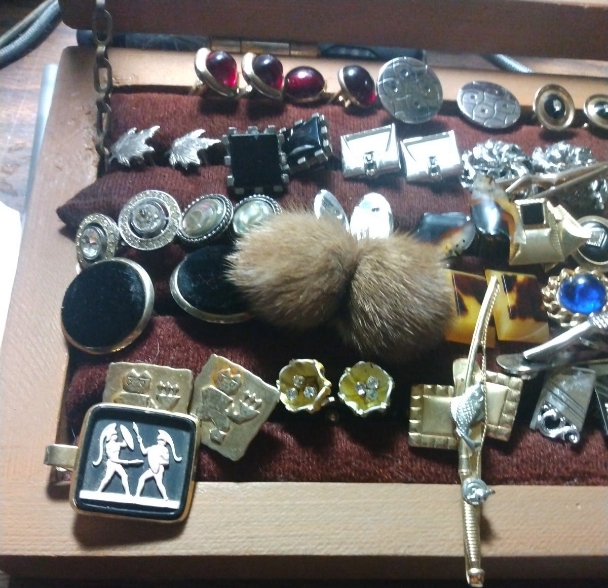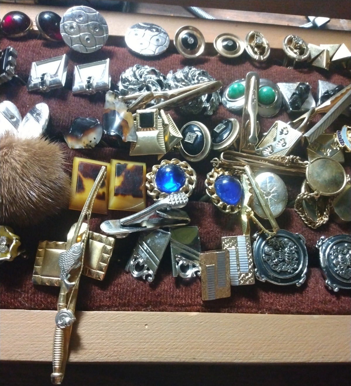 HERE IS A HUGE LOT OF MENS CUFF LINKS AND TIE CLIPS, THE LOT CONTAINS: 69 PAIRS OF CUFF LINKS AND 8 TIE CLIPS THE CASE IS NOT FOR SALE. YOU WILL NOT GET THE CASE THAT IS IN THE PICTURES. THE LOT IS ONLY FOR THE CUFF LINKS AND THE TIE CLIPS THAT ARE SHOWN. LOOK AT THE PICTURES CAREFULLY.