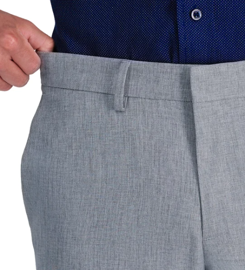 Features: Straight Fit 4-Way Stretch Fabric Haggar® Repreve recycled fibers Non iron Elastic waistband Button closure on back pockets Made in Bangladesh Content: 67% Polyester | 33% Recycled Polyester Approximate 166 GSM (4.9 oz.) fabric weight Lightweight