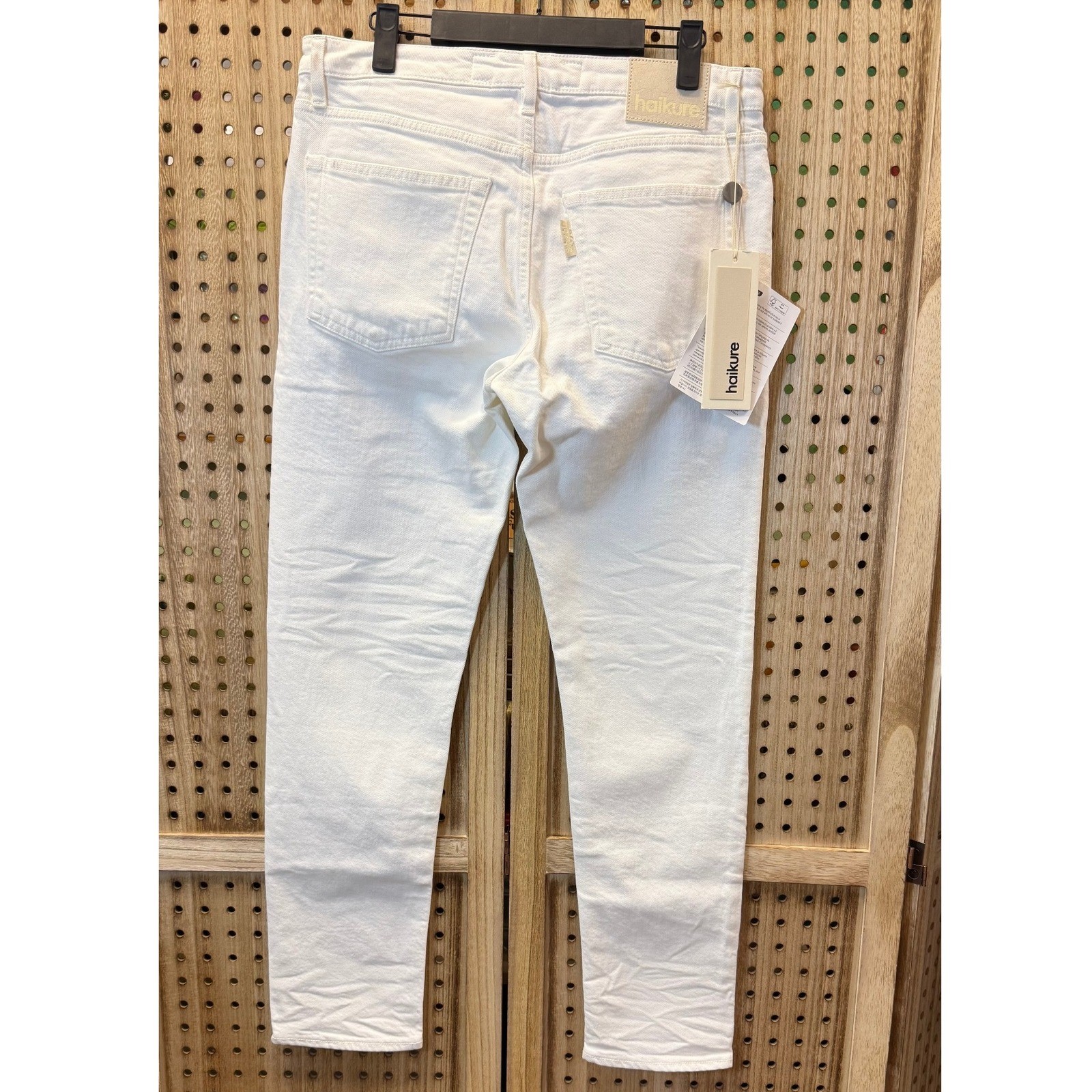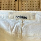 Haikure Cleveland Crop Jeans in Bianco. These comfort pure ecru jeans feature a classic five-pocket design with a button fly closure and a cropped length. Made in Italy, these jeans feature a clean design, offering a refined look. Style: Cropped Color: White Department: Women Type: Jeans Fabric Wash: Light Accents: Button, Logo Features: Pockets, Comfort, Made in Italy, Cropped, Breathable Waist Size: 31 in Pattern: Solid Fabric Type: Denim Material: Cotton Closure: Button Keywords: Haikure, Cleveland Crop, Bianco, Comfort Pure Ecru, White Jeans, Denim, Cropped Jeans, Made in Italy, Designer Jeans, Ecru Jeans, Minimalist, Contemporary Item is preowned, effort has been made to ensure all flaws are displayed photos serve as additional description Sizing varies by manufacturer and time period, please see measurements.