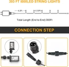 【393 FT Long String Lights & 1000 Leds】No need to extend, extra-long led christmas lights to decorate your yard, garden, Christmas tree, bushes, flowerbeds, etc. 【11 Lighting Modes & Memory Function】Upgraded string lights with 11 different working modes:Combination, Steady On, Steady On, Slo-glo, Slo-glo, Sequential, Twinkle/flash, Slow Fade, Slo-glo, Breathing, in Wave. The controller is designed to remember the last setting after cutting off the power. No need to set the light again. 【4 Levels Dimmable】 LED string lights has 4 Levels of brightness, You can set brightness to 100%, 75%, 50%, 25% according to your needs. 【Highly Waterproof Rank】Can withstand extreme weather, including heavy rain and snow, perfect for indoor and outdoor decorations. 【Safety & Customer Service】29V low-voltage light string can keep low temperature after lighting for several hours, ensuring maximum safety. Christmas string lights one-year warranty! If you have any questions, please contact us, we will try our best to give you a satisfactory solution. Product Description