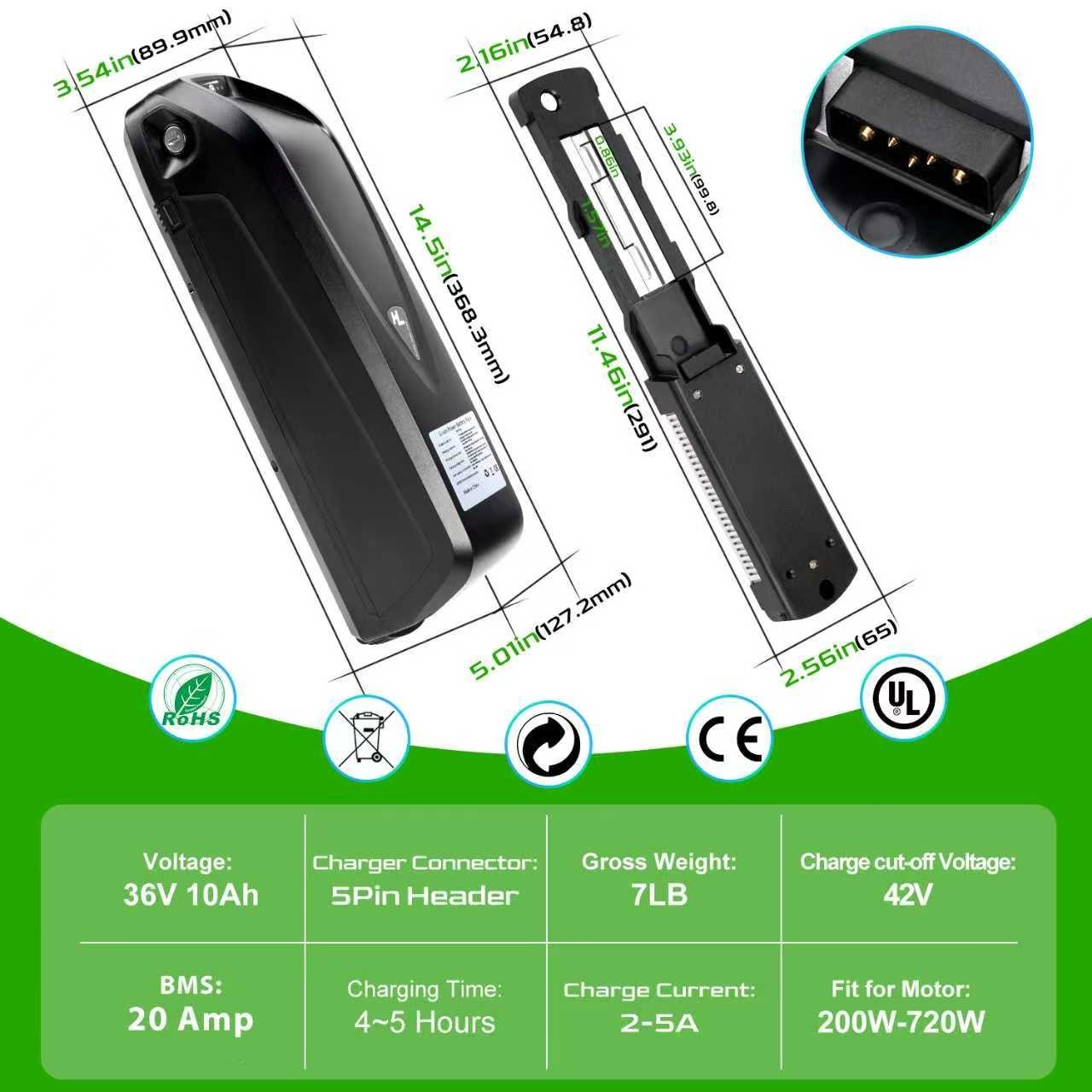 HomeHailong 36V Lithium Ebike Battery 36V 10Ah Electric Bike Battery 200W-750W