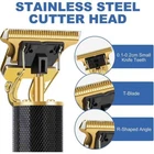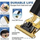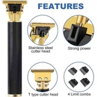 Product Details: trimmer for men is equipped with a powerful motor that helps you cut hair quickly and effortlessly. Low vibration, ultra-quiet professional design. A T-shaped cutter head, to meet your various hairstyle needs. cordless design allows you to cut the trimming process is more arbitrary. Let you experience the perfect haircut. Very suitable for home, work or travel. Features: 1. R-shaped sharp angle design The R-shaped acute angle design will not cause skin irritation due to angle problems during use, and it is sharp and wear-resistant. 2. Metal body design, with exquisite carving patterns on the handle, comfortable and non-slip, low noise, small and portable, can be easily created in Various hairstyles 3. Trimmer is powerful and sharp, capture and cut hair evenly, fast, and is labor-saving. waterproof hair trimmer, which allows you to quickly rinse the blade head in running water after use to keep it tidy. And when cutting, there is very low noise and does not interfere with your baby's sleep. 4. Exquisite packaging, perfect gift choice for boyfriend, husband, father, family and friend. Specifications: electric hairstyle outline trimmer Color: Bronze, Gold, Black Power: 5W USB Cable: 5V Battery: 1200mAh Li-battery Operating Time: 2 hours Charge Time: 2 hours Charging Method: Battery Charging Stand OR USB Charging Product Details: 1 x Hair clipper 1 x Charging 1 x Cleaning brush 1 x Manual 1 x Box 4 x Limit combs