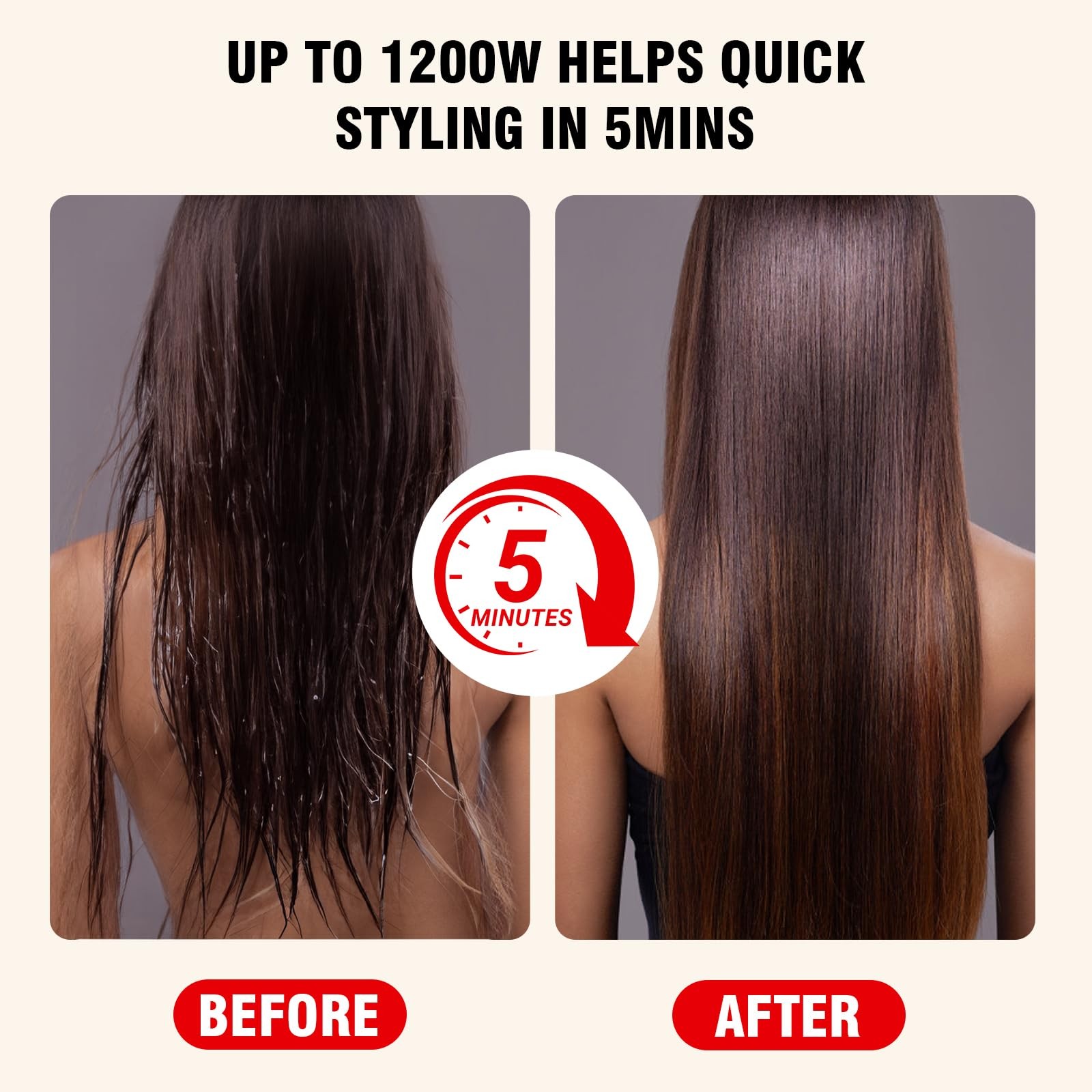 Hair Dryer Fast Dry 1200W Professional Ionic Hairdryer, Super Compact & Lightweight with Even Heat Anti-Static, Frizz-Control, Quick Drying, Energy Saving, Hairdryers for Women & Man 【Advanced Hair Care Technology】- salon-quality Experience at home with hair dryer's advanced features. ①Built-in chip Control of the heat and speed Helps prevent over-drying and over-styling damage,Delivers maximum shine,Maintains your hair's natural moisture.②while the built-in hair care ions to nourish your hair and repairs your hair scales. Smooth unwanted frizz and create shine on hair 【1200W Faster Drying Your Hair】- This ionic hair dryer powered by a high-speed robust motor and advanced aerodynamic design, not only providing a powerful airflow for optimal styling effect, but also longer service life than other hair dryers.2-5 minutes fast dry depending on hair thickness and length. 【3X Ceramic Coating & Lower Radiation】- This hair dryer has 3x Ceramic Coating that ensures even heat for less damage while Tourmaline Ionic Technology tames frizz for sleek, healthy hair. It also have a overheated and low electro magnetic fiel protection. Low magnetic wave structure saves energy, has a low radiation than similar hair dryer 【200 Millions Ionic Technology】- The dryer harnesses an Ionic generator, which emits 200 Millions Ionic for ideally, long-lasting frizz-free results.the hot air travels through the grille and releases more ions than a standard dryer, leaving you flyaway free with healthy-looking lustre with serious shire after every styling session. 【Turbo & Cool Buttons】- Dry and Style With Ease Innovative Turbo Heat increases airflow to dry up to 50% faster, while the Cold Shot releases cold air to lock in styles. 【Safe & Family-Friendly Design】- Built-in overheat protection ensures safe operation, while advanced low-EMF technology reduces radiation by 50%. A healthier choice for everyday styling, suitable even for kids and expectant mothers.