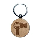 Hair Dryer Solid Engraved Wood Round Keychain Tag Charm