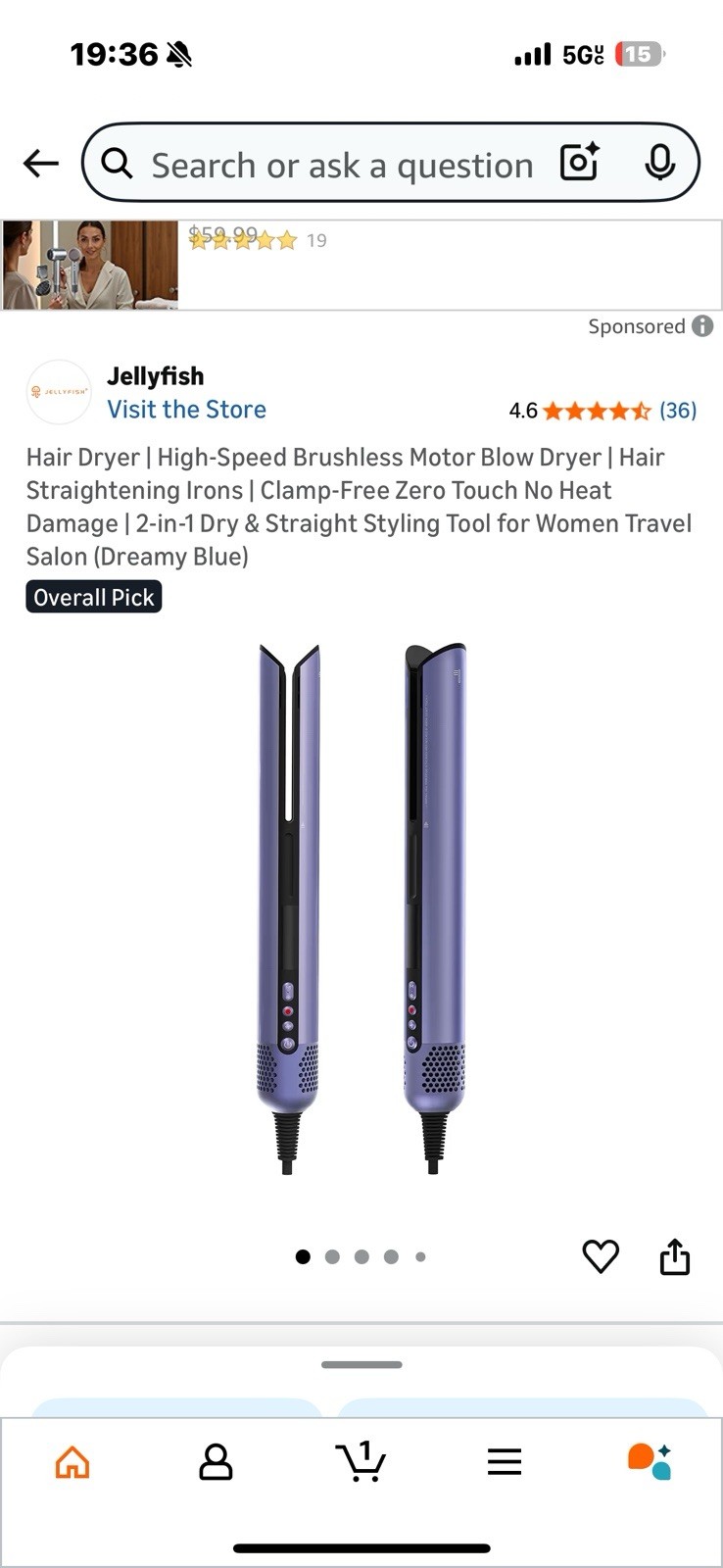 The Jellyfish Hair Straightener Iron 2 in 1 is a versatile styling device designed for both women and unisex users. With adjustable heat settings and a maximum temperature of 450 °F, this electric straightener is suitable for all hair types. The 2-inch ceramic barrel allows for easy styling and smooth results, making it a convenient choice for achieving salon-quality hair at home. The stylish purple color adds a fun and trendy touch to your beauty routine.