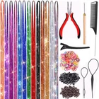 Hair Tinsel Kit with Tools: 13 Colors 3600 strands hair tinsel , 1 piece crochet, 1 piece plier, 200 pieces micro silicone link rings beads (100pcs black + 100pcs brown), 2pcs Ponytail Hoop Tools,1pc Rat Tail Comb,1piece hair clips, 1 pack of Colorful rubber bands as a gift. Definitely worth it for the money. Hair Tinsel Safe: Hair tinsel made by 100% high quality polyester fiber hair tinsel. Safe, , tasteless and will not fade. Can be washed, blow-dried, straighten, ironing,cut into different length according to your hair extension requirements. Each color tinsel is packaged separately, which is more easy to identify and use. Fairy Hiar tinsel Easy Match Your Style: The hair tinsel is the latest trend in hair fashion and the perfect hair accessory for girls of all ages.Adds amazing colors and sparkle to hair. create charming and eye-catching effect , you get tons of compliments. Tinsel Hair Extensions: The hair tinsel strands 48 Inch are long enough , cut into different length according to your hair extension requirements.13 Colors to Choose: Orange, Gold, Silver, Pink, Violet, Sky Blue, ,Champagne Gold , Rose Red, Black, Red, Blue, Green, Rainbow.a variety of colors meet the various styles of fairy hair, Release Your Charm. Service: If you have any question or problem about the Hair tinsel kit, We provide 24-hours .