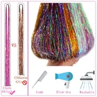 Hair Tinsel Kit with Tools: 15 Colors 4200 strands hair tinsel , 1 piece crochet, 1 piece plier, 200 pieces micro silicone link rings beads (100pcs black + 100pcs brown), 2pcs Ponytail Hoop Tools,1pc Rat Tail Comb,1piece hair clips, 1 pack of Colorful rubber bands as a gift. Definitely worth it for the money. Hair Tinsel Safe: Hair tinsel made by 100% high quality polyester fiber hair tinsel. Safe, , tasteless and will not fade. Can be washed, blow-dried, straighten, ironing,cut into different length according to your hair extension requirements. Each color tinsel is packaged separately, which is more easy to identify and use. Fairy Hiar tinsel Easy Match Your Style: The hair tinsel is the latest trend in hair fashion and the perfect hair accessory for girls of all ages.Adds amazing colors and sparkle to hair. create charming and eye-catching effect , you get tons of compliments. Tinsel Hair Extensions: The hair tinsel strands 48 Inch are long enough , cut into different length according to your hair extension requirements.15 Colors to Choose:Pink White, Symphony Pink, Orange, Gold, Silver, Pink, Violet, Sky Blue, ,Champagne Gold , Rose Red, Black, Red, Blue, Green, Rainbow.a variety of colors meet the various styles of fairy hair, Release Your Charm. Service: If you have any question or problem about the Hair tinsel kit, We provide 24-hours .