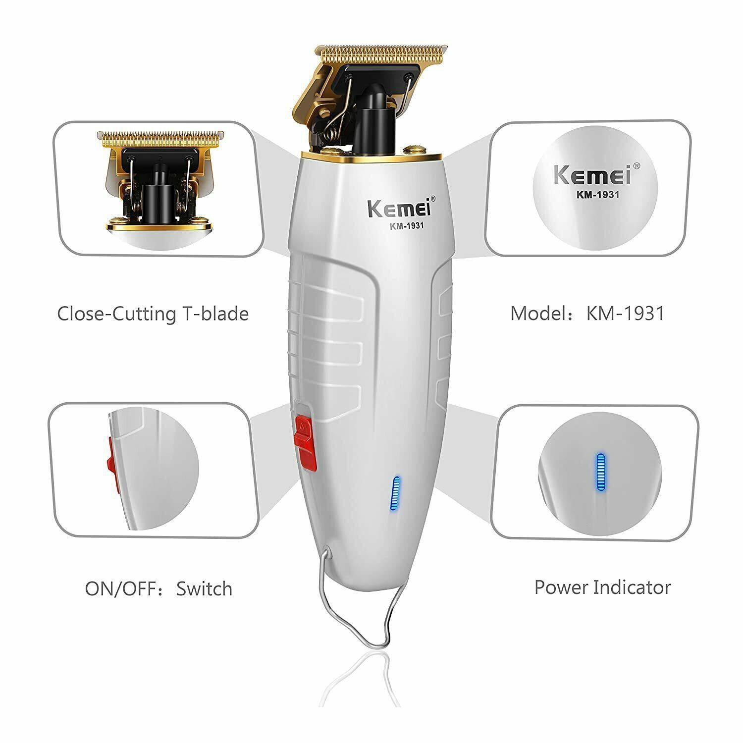 Hair Trimmer Baldheaded Hair Beard Clipper Cordless Grooming Kits KM-1931 About this item Professional Precision; Kemei 1931 is a T outline clipper with smooth, sharp and precise performance.It's perfect for trimming,all-around outlining,dry-shaving and fading with cordless freedom and convenience. Titanium T Blade: The blade is made of high-carbon steel,which stay sharp for comfortable trimming.This hair clipper can be zero-gapped,and it's designed for detailing and fine line trimming. Large-Capacity Lithium Battery: Built-in 2000mAh rechargeable Li-ion battery delivers over 100 minutes of nonstop run time after charging 2.5 hours.The LED light will indicate battery power levels. Portable and Convenient: USB charge and Cord/Cordless operation features is more convinient.It can be connected to USB-powered devices such as adapters,computers,car chargers,mobile power supplies,etc. Accessories Included: For your more convenient use,KM-1931 is equipped with all the accessories needed by professional barbers:1 trimmer,1 lubricating oil,1 cleaning brush,1 comb,1 USB cable,5 limit guards (1mm,2mm,3mm,4mm Product Description Kemei-1931 is a professional 0mm hair clipper/beard trimmer with smooth, sharp and precise performance. No doubt it works well on balding and fading with a self-sharpening high carbon steel titanium blade. It’s a good choice for you! Kemei Professional 0mm Hair trimmer: *Compact body *High carbon steel titanium blade *Long battery life *Indicator light (alert you when the battery is low) *USB charging (faster and more convenient to charge) *Easy to carry, suitable for travel *Suitable for hair cutting, beard trimming, fading and engraving What's in the box 1 * Kemei-1931 Hair Clipper 5* Limit Combs (1mm, 2mm, 3mm, 4mm 1 * Cleaning Brush 1 * USB Charging Cable 1 * Instruction High carbon steel titanium blade Equipped with a self-sharpening high carbon steel titanium blade, zero distance cutting is possible. It is a perfect tool for trimming edges, sculpting, and balding USB quick charging USB charging is more convenient, charging for 2.5 hours and using for 180 minutes.The indicator light is red when the battery is low and blue when it is fully charged Powerful motor Adopt high speed professional motor, strong power, low noise. You can trim various hairstyles easily, non-stick hair, non hair-card Hair cutting tools Easy to use, simple. Choose the right limit comb, you can easily cut hair for yourself or family members, suitable for the elderly, children, women and men Beard trimming tools Used in conjunction with the different limit comb, it can be used to control the length of the beard, so that the beard length is the same, is the perfect tool for beard maintenance DIY design tools Can cut a clear outline, you can easily carve out your favorite hair styles, very suitable for barbers and beginners to use. You will enjoy it! On Jul 6, 2025 at 20:48:30 PDT, seller added the following information: