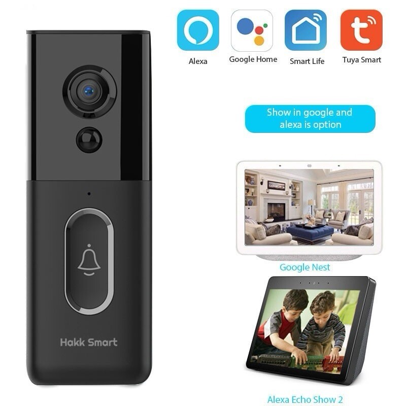 Introducing the ultimate guardian for your doorstep! Our Hakk smart video doorbell combines cutting-edge technology with seamless security, allowing you to see, hear, and speak to visitors from anywhere. Experience peace of mind and convenience like never before with our sleek and smart doorbell solution! Features; Sensor: 1/2.9" CMOS 2.8mm @ F2.0 Angle: Diagonal 160° horizontal 130° Resolution: 1920*1080 1080P Stand-by: About 12 months Day/Night: 850nm infrared, 5m Support PIR human detection and wake up Video mode: manual & alarm recording Micro SD card: 32G Micro SD card included, Max.Support 128GB Wireless: WIFI 802.11b/g/n 2.4Ghz Support Two-way intercom Sleep time: 15S (Support app wake up) Cloud storage: Support / Waterproof: IP65 Amazon Alexa/Google assistant: Support Power supply: DC5V 1A or 2 unit 21700 battery*4000mAH( total 8000mah) Our smart video doorbell, complete with a 14-day free return policy and a generous 90-day warranty. With these features, we ensure that our customers have peace of mind and confidence in their purchase. Experience the convenience and security of our doorbell with the added assurance of hassle-free returns and a warranty for your satisfaction.