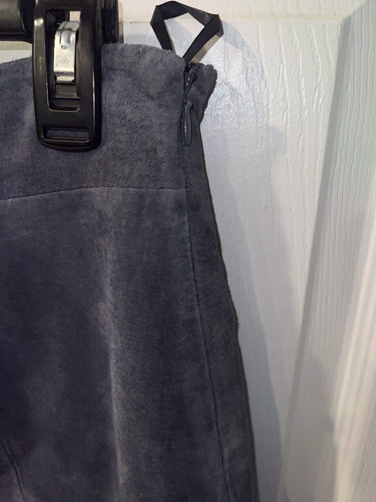 Hal Rubenstein gray suede lather side zip swing a line skirt Sz 10 new with tags Waist 32” Waist to hem 23”
