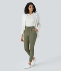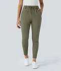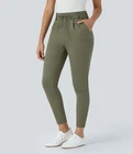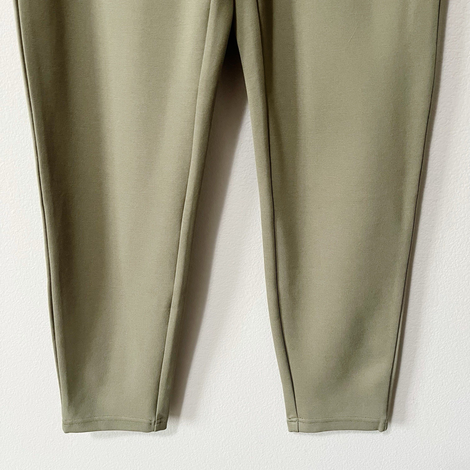 Brand new with tags Halara Flex Mid Rise Drawstring Side Pocket Ankle Length Work Tapered Pant in Oil Green. Size medium. Elastic waistband with drawstring. Pockets. NWT- writing on size tag. All measurements are approximate, not exact. Inseam: 25.75" Waist: 14.5" measured flat Rise: 12" Leg opening: 5" measured flat