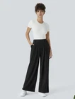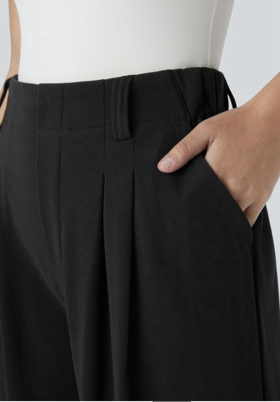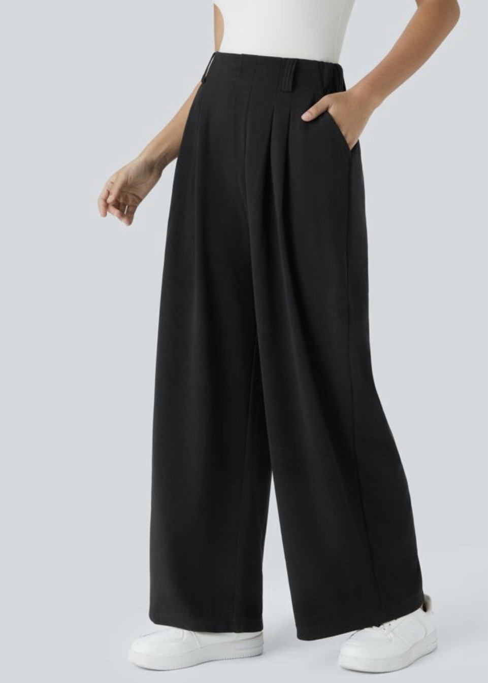 The NEW Halara High Waisted Slimming Wide Leg Micro Waffle Work Pants in Black XS Tall are a versatile and comfortable addition to any woman's wardrobe. Made from a lightweight and stretchy polyester blend fabric with elastane for added comfort, these pants feature a high waist and wide-leg design for a flattering and stylish look. The pull-on closure and pleated accents add a touch of elegance to these pants, suitable for various occasions including travel, casual outings, workwear, and business settings. Perfect for the summer, fall, and spring seasons, these pants offer both style and comfort for everyday wear. New with tags. Women’s size XS - Tall