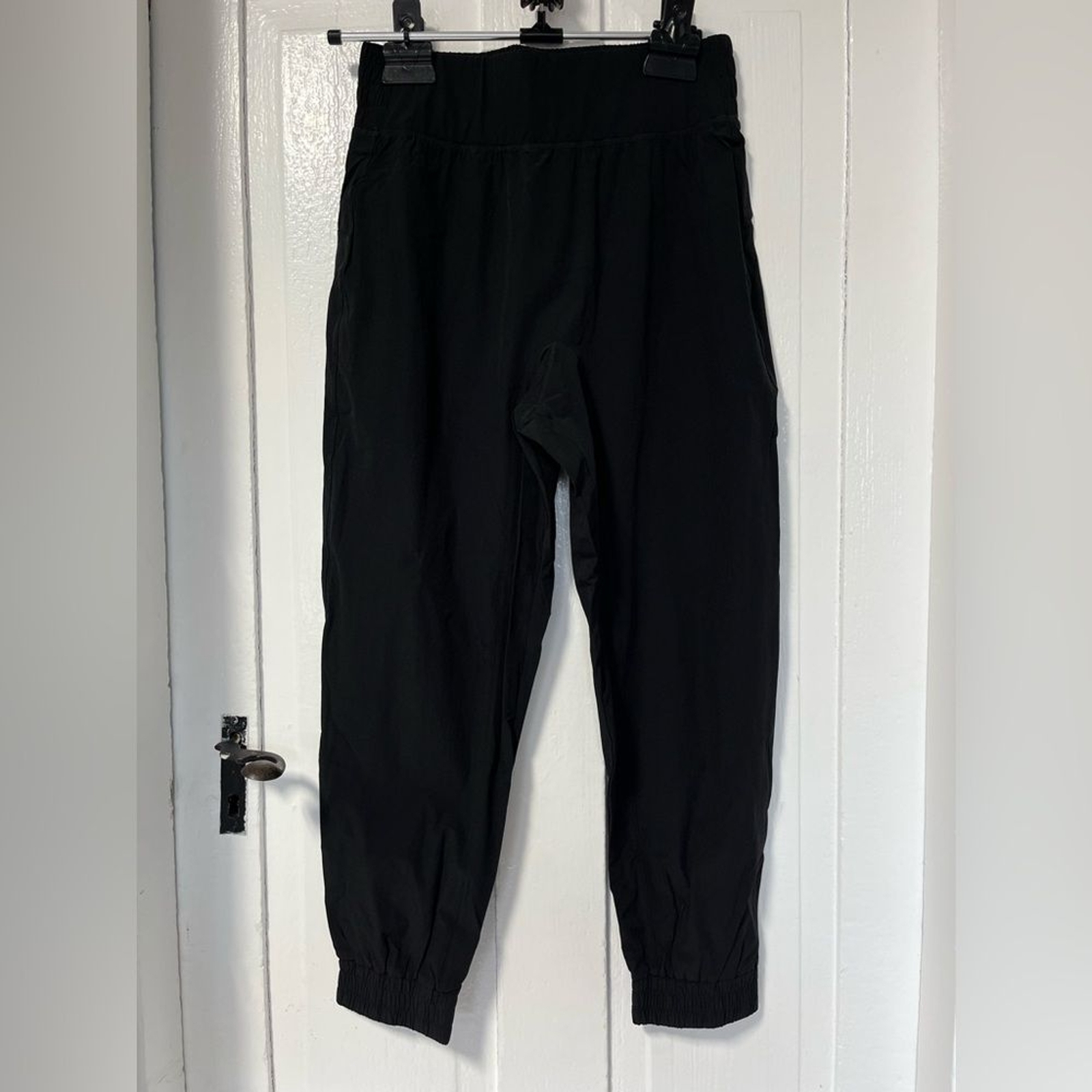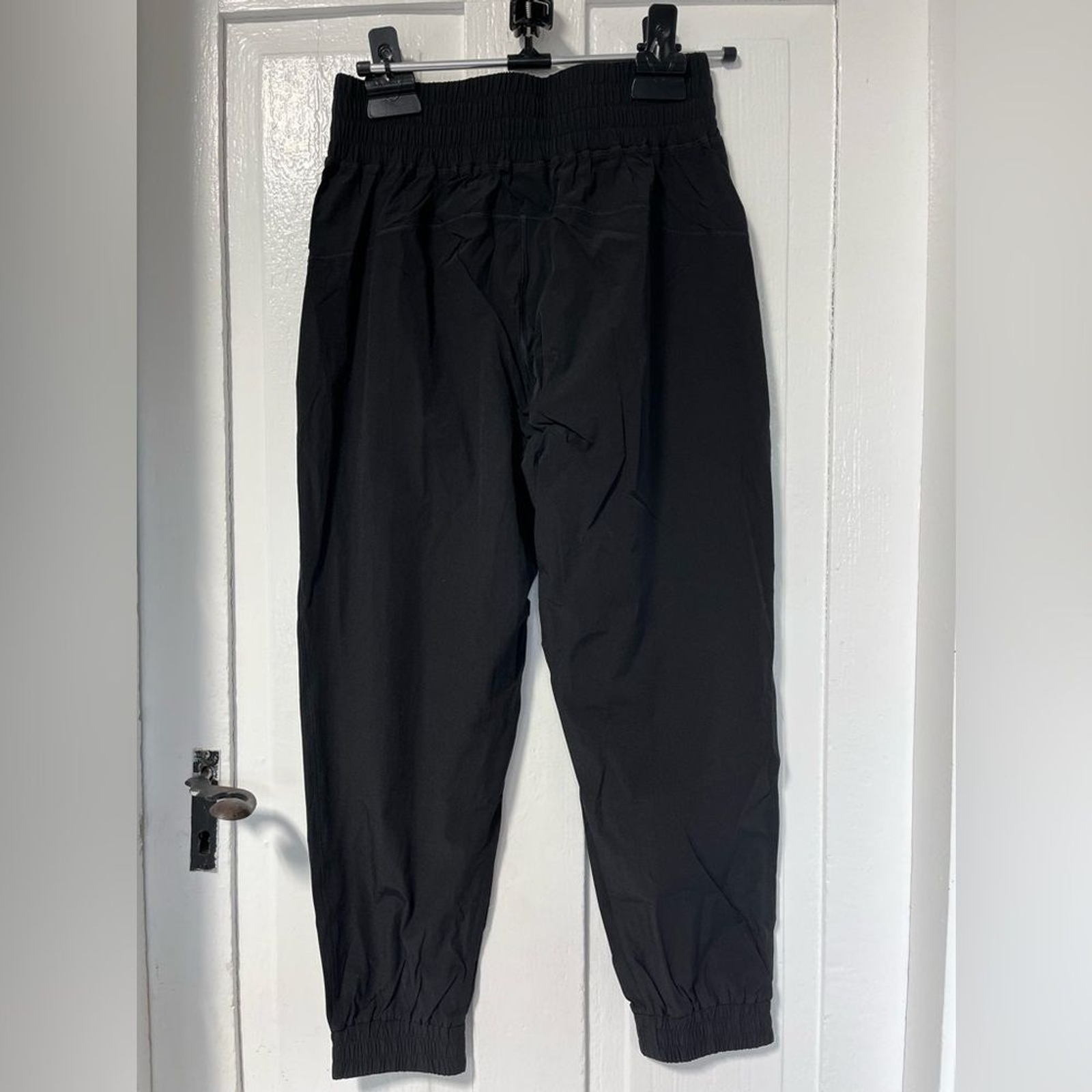 Absolutely love these joggers! The lightweight nylon blend is so comfortable, and the elastic waistband fits perfectly. The petite length is just right—no bunching at the ankles. Super easy to pull on and great for casual wear or lounging. The fabric feels durable yet breathable, and the black color goes with everything. Perfect for a dog-friendly, smoke-free home! Highly recommend for anyone looking for stylish, comfy joggers.
