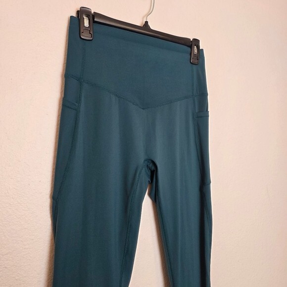Halara NEW Size Medium UltraSculpt SoCinched High Waisted Leggings Pockets Green. Ships With USPS Ground Advantage Mail -Curve-Hugging, Halara UltraSculpt™ Fabric. Highlight your curves with our contour-sculpting fabric -Size Medium -Manufacturer color JUNE BUG a deep teal green/blue. My photos don't do the color justice as it was hard to get an accurate representation of the color, it is best represented in stock photos. Last photo in natural lighting -Full length -Breathable -Sweat-absorbing -Soft and sleek -Compression for shaping -High rise -68% nylon 32% elastane -Measurements are approximately 13 in across the waistband 10.5 in rise 36.5 in long 28 in inseam -New With Tags perfect condition! ------------------------------------------- Thanks for looking, feel free to reach out with any questions! I offer FAST shipping when payment is received. Have a a GREAT DAY! mandajane223