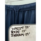 Comfortable lounge pants in a versatile design. These pants feature a relaxed fit with a comfortable elastic waistband and a drawstring for an adjustable fit. The pants also have convenient side pockets, perfect for holding small essentials. The wide leg design offers a modern silhouette, making them suitable for both lounging at home and casual outings. The dark blue color adds a touch of sophistication, while the lightweight fabric ensures breathability and ease of movement. Measurements: • Waist: 33" • Rise: 13" • Inseam: 29" Color: Blue Department: Women Type: Pants Material: Polyester, Spandex, Polyester Blend Leg Style: Wide-Leg Features: Pockets, Drawstring, Elastic Waist, Comfort, Lightweight Fabric Type: Knit Closure: Drawstring, Pull On Pattern: Solid Accents: Pockets Occasion: Casual, Travel Inseam: 29 in