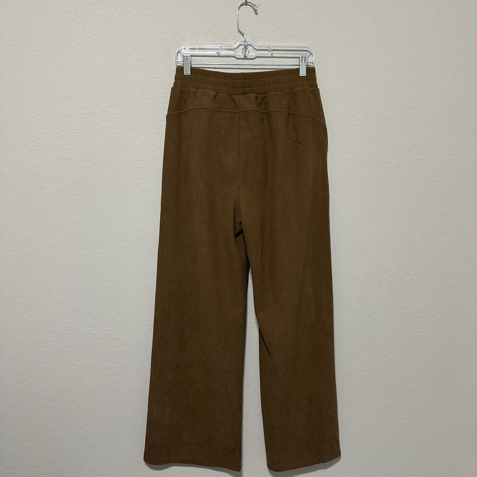 These pants are so comfortable and stylish! The high waist and side pockets are super flattering, and the ribbed fabric feels soft yet structured. The fit is perfect—true to size—and the straight leg gives a sleek, polished look. Love the rich brown color too! Great for both casual and dressed-up outfits. Highly recommend!