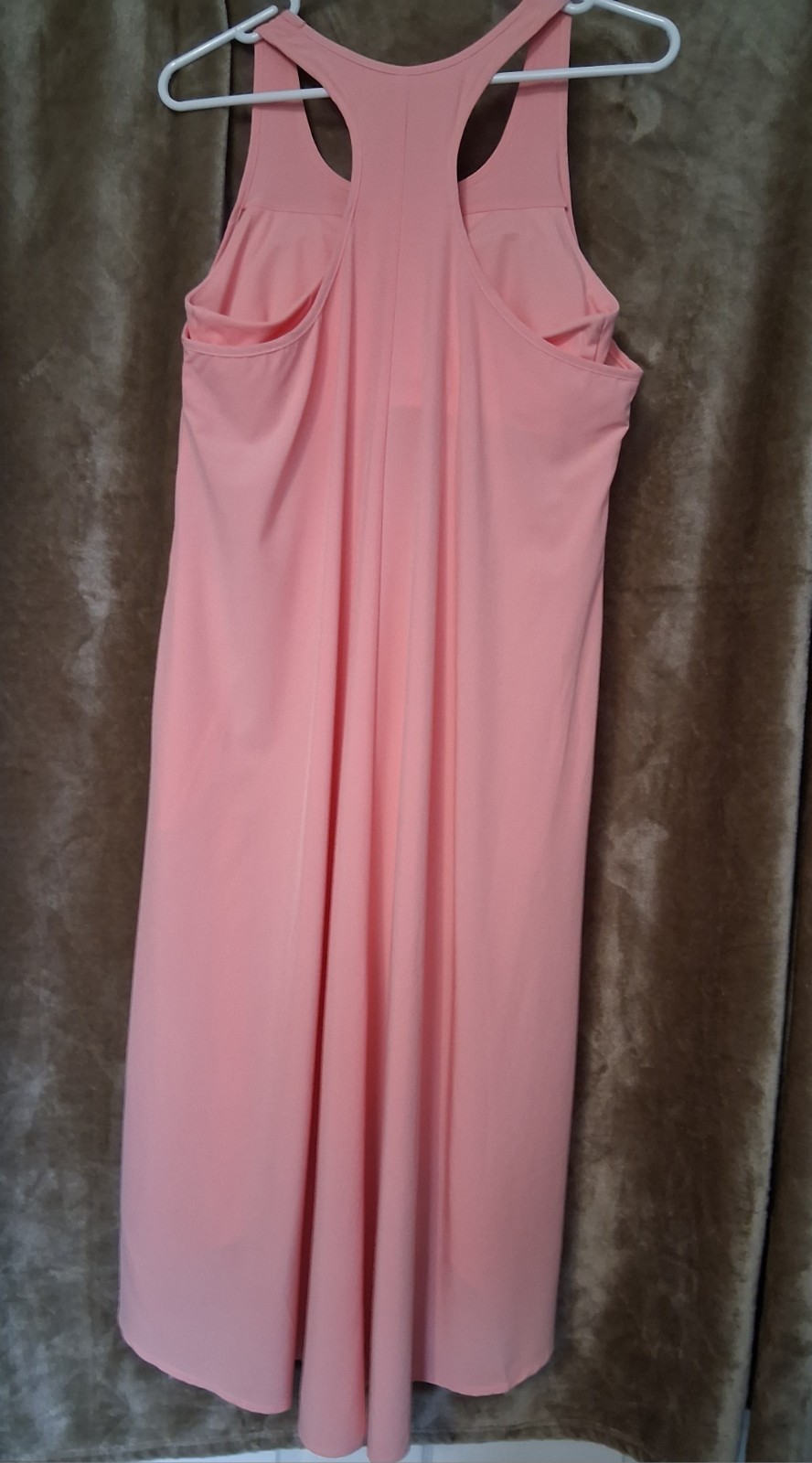 The Halara Size M NWT Breezeful Racerback Hi-Lo Built In Bra Pocket Dress in Blossom is a stylish and comfortable option for casual occasions during the summer and spring seasons. Made from 85% polyester and 15% elastane, this sleeveless dress features a scoop neckline and a pullover closure for easy wear, with built in padded (removable) bra. The high low style and inclusion of pockets add a trendy touch to the midi-length dress, making it a versatile addition to any wardrobe.