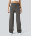 Brand new with tags Halara High Waisted Button Front Straight Leg Casual Pants with Multiple Pockets in dark grey. Size medium. Stretchy. NWT- writing on interior size tag (see photos). All measurements are approximate, not exact. Inseam: 31" Waist: 14.5" measured flat Rise: 12" Leg opening: 10" measured flat