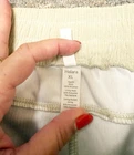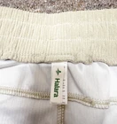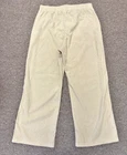 These Halara high waisted side pocket wide leg mop corduroy tan khaki pants in women's XL are perfect for casual occasions with a wide elastic waistband for a comfortable fit. Made of polyester corduroy fabric, these beige pants feature a solid pattern and flat front design with pockets for added style. The bohemian and city-inspired chino style pants also have a high rise and a 30-inch inseam, making them a versatile and trendy addition to any woman's wardrobe. 18-22” straight across at waist 30” inseam 14” rise