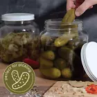 64 oz. Gallon Clear Glass Jar This Half Gallon capacity glass jars with a 110 mm (110-400) continuous thread finish looks great and have a clean cut look. While created esthetically to please the eye and profound clarity this jar is still created in USA with superior quality craftsmanship. White Metal Lined Plastisol Lids This continuous threaded cap has a white exterior with a white interior and white knurled edge. White polyethylene lined metal caps are a great general purpose closure. It also works well with liquid products Wide Mouth Jar With a generous 110 mm circumference opening, these jars are great for canning whole fruits and veggies. The wide mouth allowing easy access with one's hand or preferred kitchen utensil. Fermenting and Preserving Gallon Mason Jars will suit your needs when it comes to brewing and fermenting wine, beer, kombucha, kefir, and all sorts of fun teas. You can even use this jar for storing cookies or terrariums The gallon glass mason jar will keep its contents safe from the outside elements for long periods of time. All-purpose Kitchen Tool Jars are often used for pickles, pickled eggs, kombucha, and various bulk storage items Easy Breezy Cleaning To clean; wash the jars by hand in soap and warm water or place in dishwasher for a quick safe clean! Lids should be washed by hand. Dimensions Height: 6.28 inches Label Panel: 3.24 inches Diameter: 5.59 inches Capacity : 65 oz BPA free approved caps are not only easy to twist on but will create an airtight seal to allow you to use the container for pickling, fermenting and brewing. 1 Half gallon glass mason jars are great for many uses such as kombucha brewing, sun tea, canning, storing sourdough or any dry goods, pickling eggs, pickles and more. Also suited for dry goods such as cereal, legumes, and pasta. JAR DIMENSIONS: 6.28" tall, 4" wide opening With the Wide Mouth Half Gallon (64 oz) Kombucha Jar you can enjoy brewing your own kombucha right from your very own kitchen. The nutritional benefits are endless and it’s as fun to prepare as it is to savor. Get in on this healthy trend today.