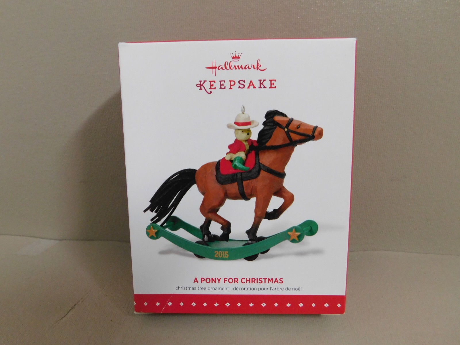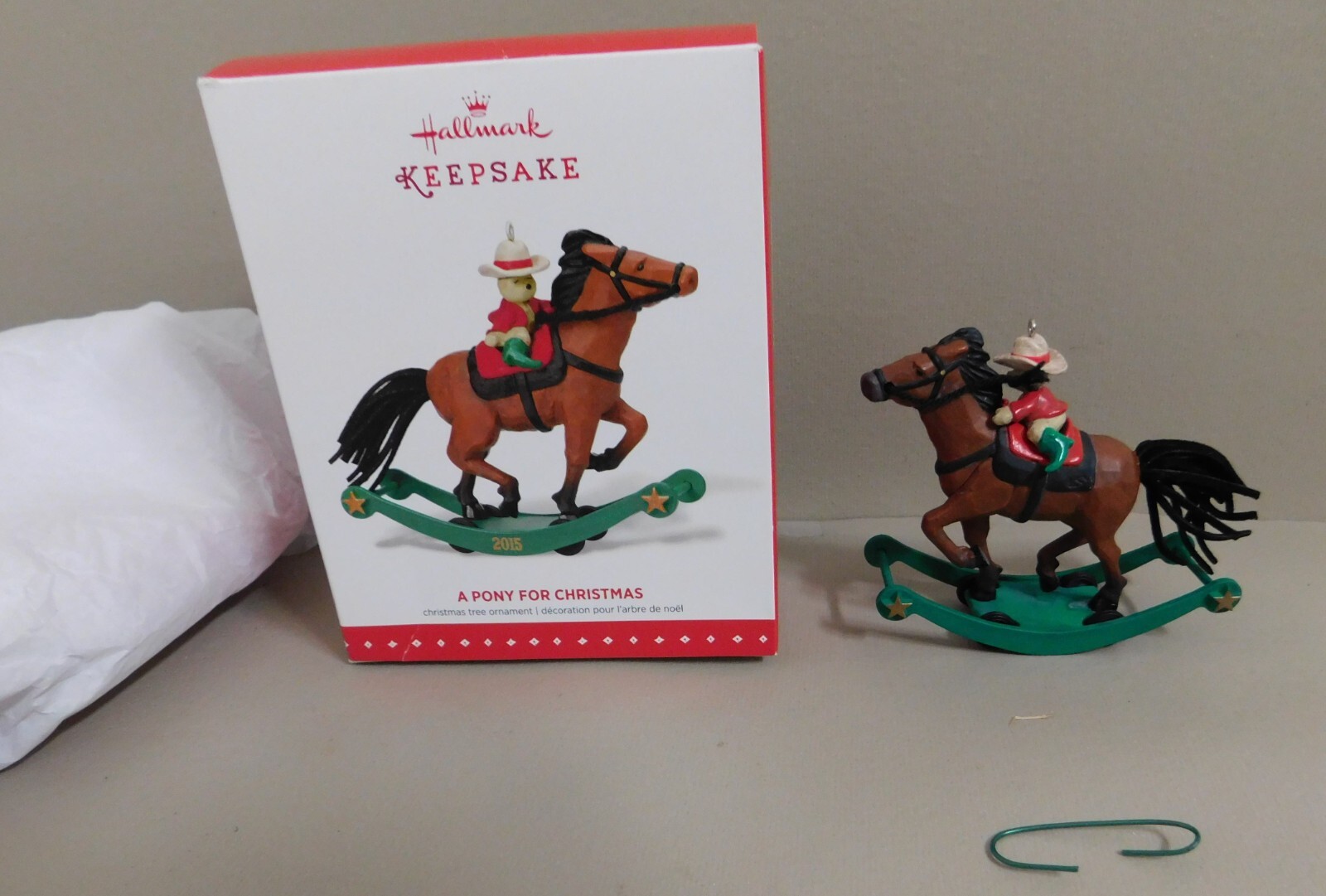 Hallmark Keepsake Ornament A Pony For Christmas, Repaint, Limited Qty., 2015 LE Limited Edition This repainted version of the 17th ornament in the A Pony for Christmas Series was issued in limited quantities and first available at the 2015 Keepsake Ornament Premiere Event Pre-Owned in Good Condition - Appear to may had the rear hoof of horse area reglued to base at some point in its life. - see pictures for actual condition - comes in original box as shown. In Very Good Condition - see pictures Please see all pictures as they are part of the description. This is the actual item that you will receive Please ask any questions prior to purchase I do combine shipping Please check Shipping Details for additional shipping methods offered. Costs may vary depending on your location